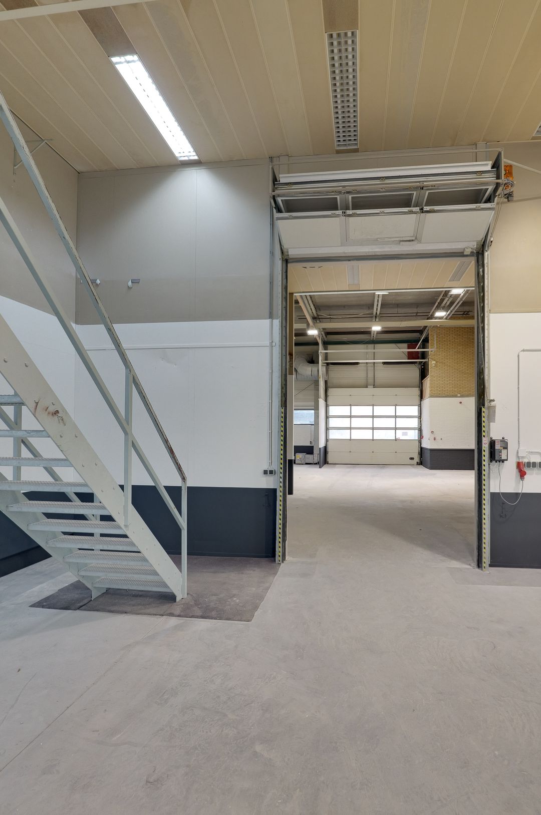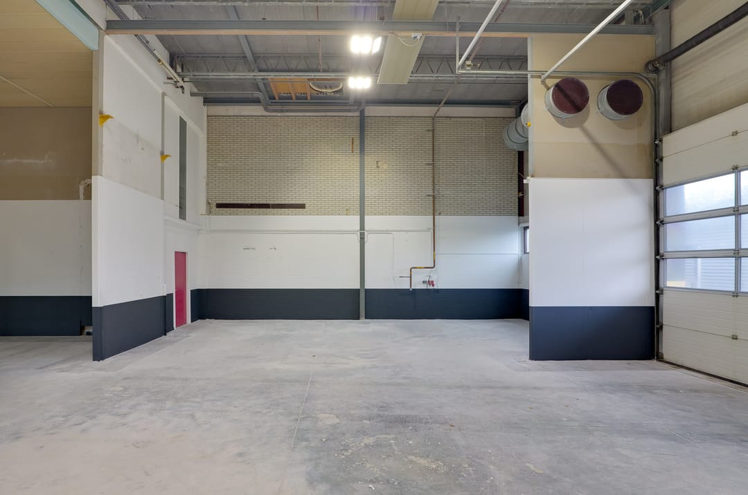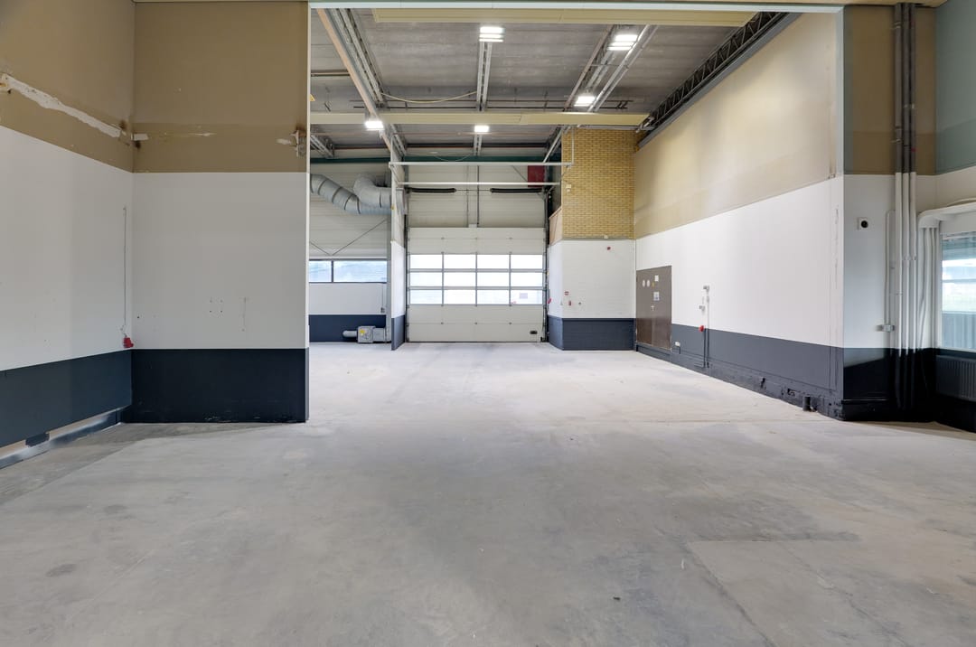 - Overheaddeuren, betonvloer, toilet en pantry