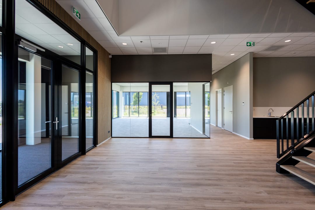 • LED-verlichting (200 Lux + 1m) geschakeld op bewegingsmelders (1 per 100 m² BVO)