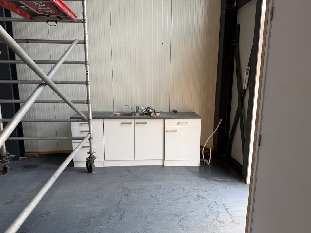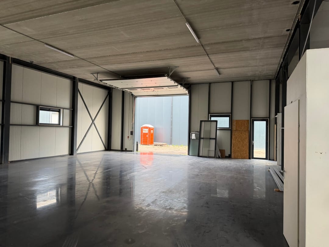 In de huidige staat, o.a. voorzien van basis verlichting, keukenblok, dubbel sanitair, en 1 elektrische overheaddeur.