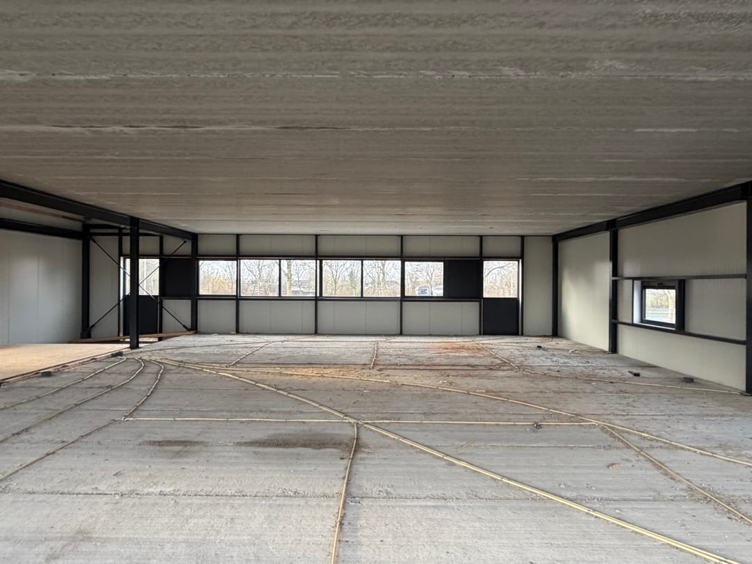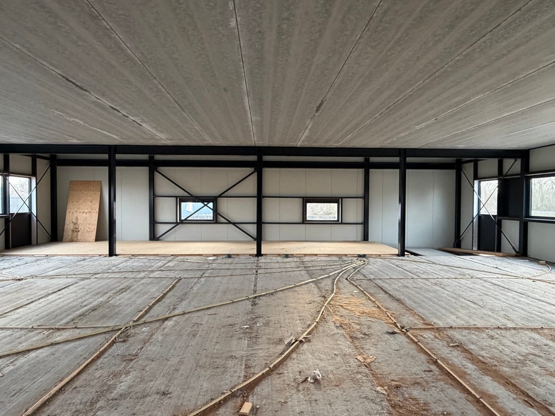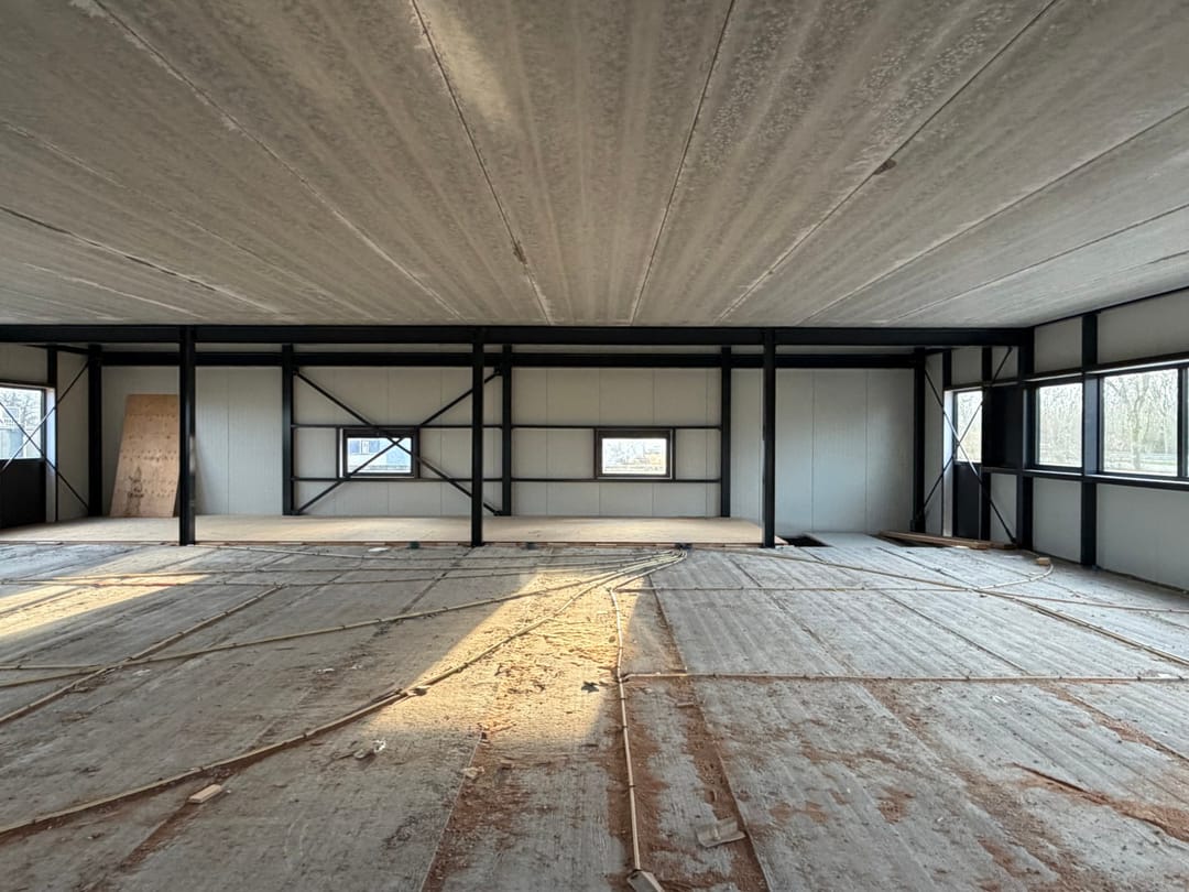 Het pand is gebouwd in 2012 en in 2025 volledig herbouwd en voorzien van een betonnen verdiepingsvloer. Het pand is opgebouwd uit een staalconstructie, circa 10 meter hoog (begane grond circa 4,9 meter hoog en verdieping ruim 3 meter hoog) voorzien van een geïsoleerd dak en nieuwe sandwichpanelen. Het object is voorzien van 1 overheaddeur en een gladde betonvloer.