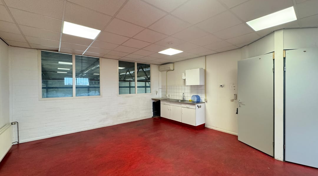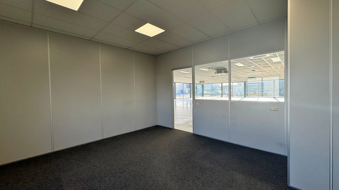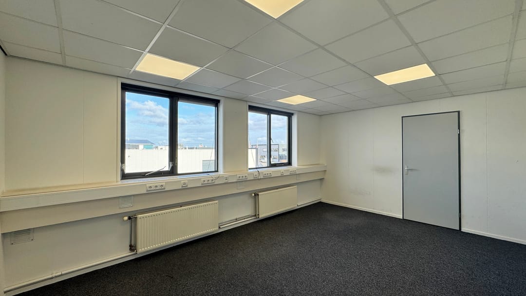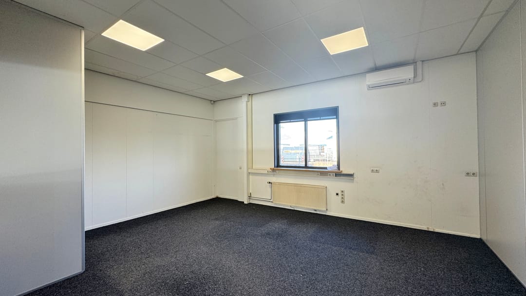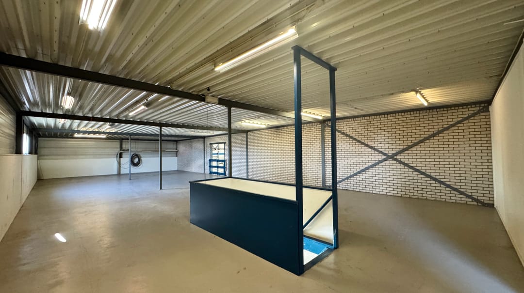 - Airconditioning, overheaddeuren, krachtstroom, betonvloer, toilet, pantry, inbouwarmaturen en te openen ramen