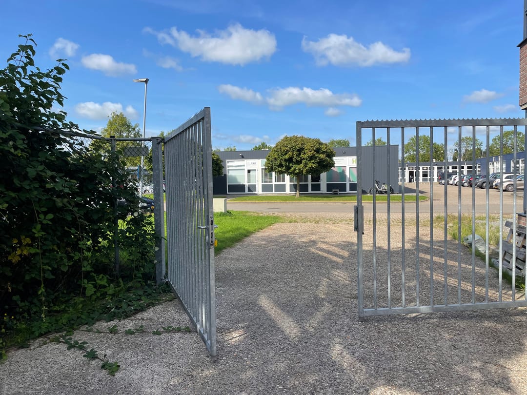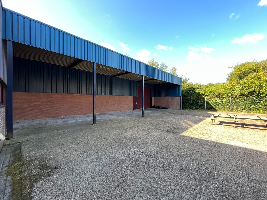 Het achterste deel van het bedrijfscomplex is te huur. Dit deel van het complex is vanaf de openbare weg - via een afsluitbaar hek - bereikbaar. De opslagruimte beschikt over een grote overheaddeur waar u vanaf de straat nagenoeg recht op af rijdt. Zie pijl op bijgevoegde plattegrond.