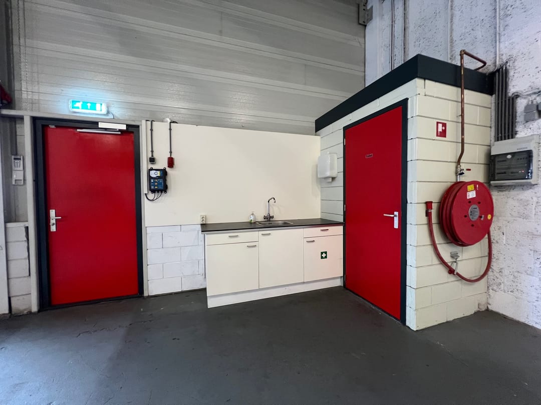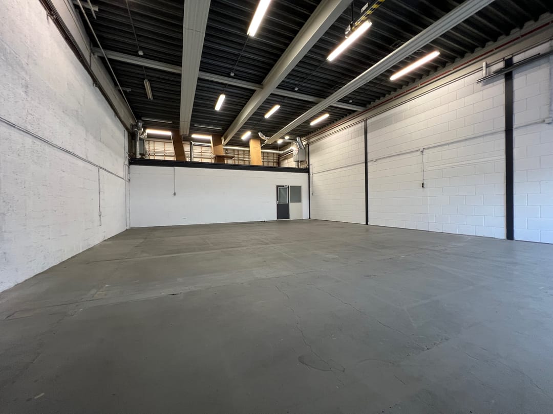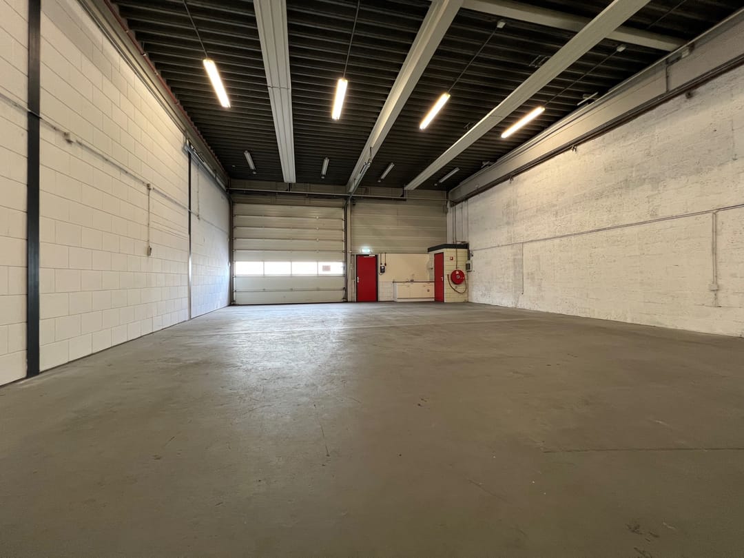 - Overheaddeuren, betonvloer, toilet en pantry