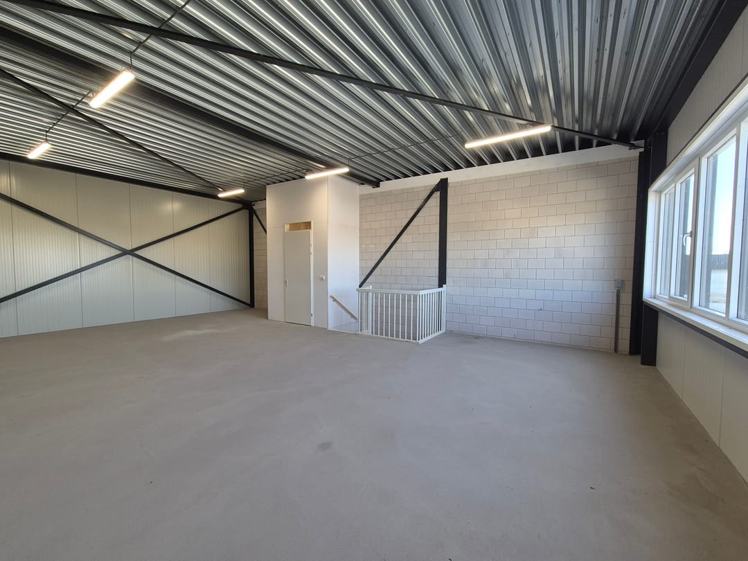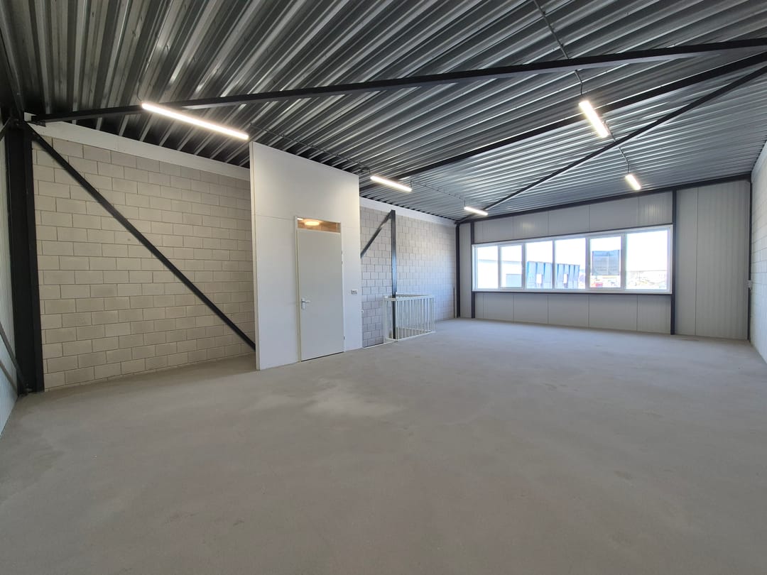 De bedrijfs-/kantoorunit is opgeleverd met een meterkast, betegeld toilet, overheaddeur, afgedopte leiding voor het aansluiten van een pantry.