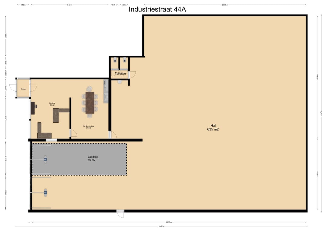 - overdekte laadkuil met (elektrisch) overheaddeur met een hoogte van 500 cm en breedte van 465;