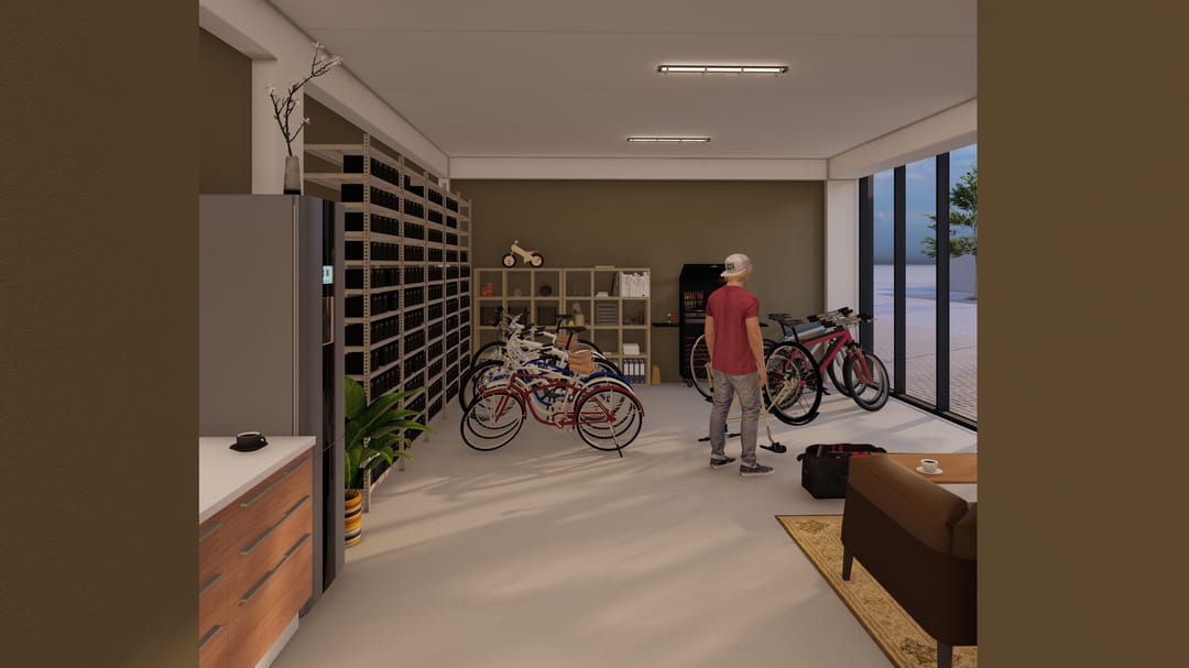 - Overheaddeuren, betonvloer, toilet en pantry