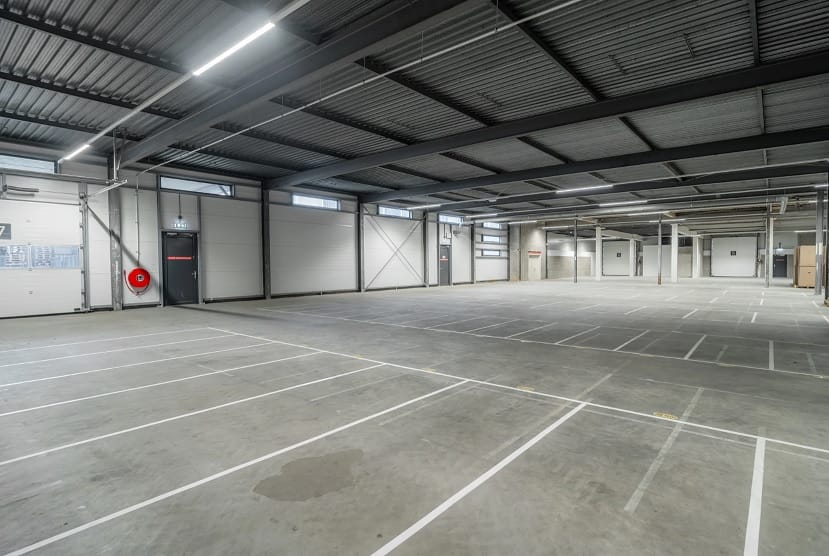 - Gladde betonvloer met hoge draagkracht (ca. 3.000 kg/m²);