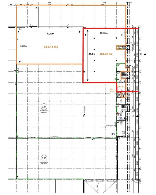 De ruimte is tevens gesplitst te huur, onder andere als bedrijfsruimte van ca. 500 m²
