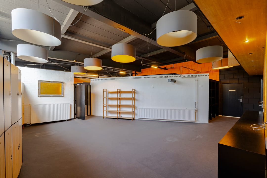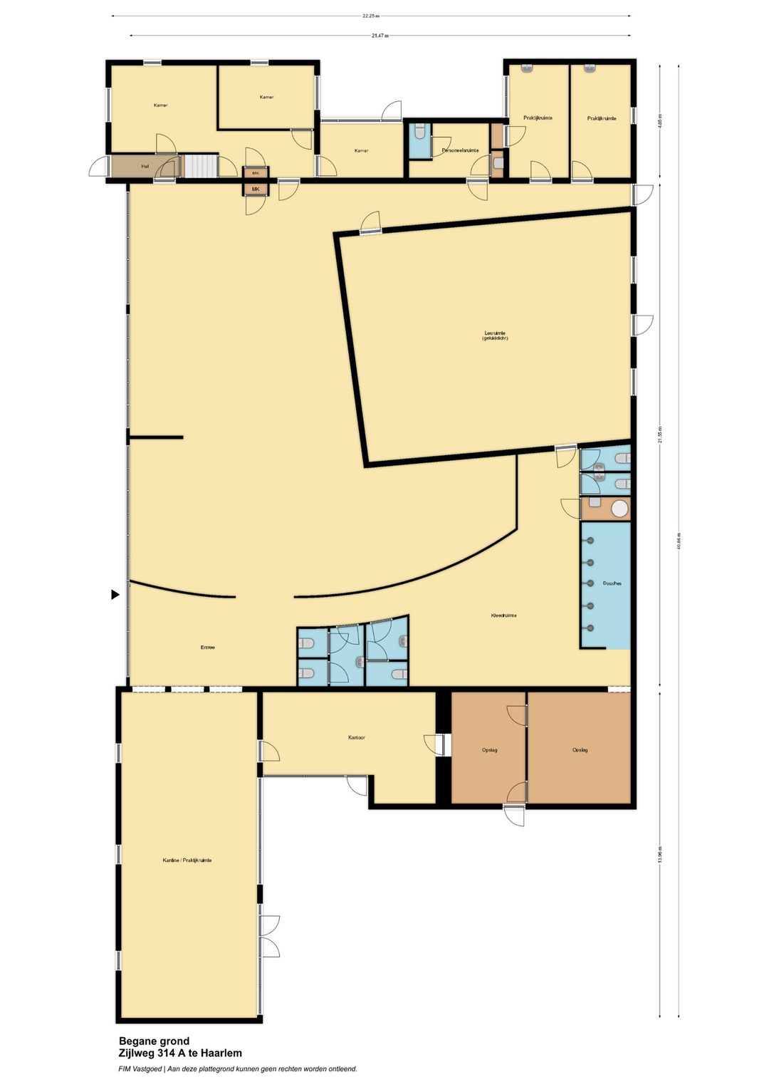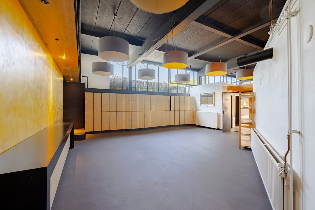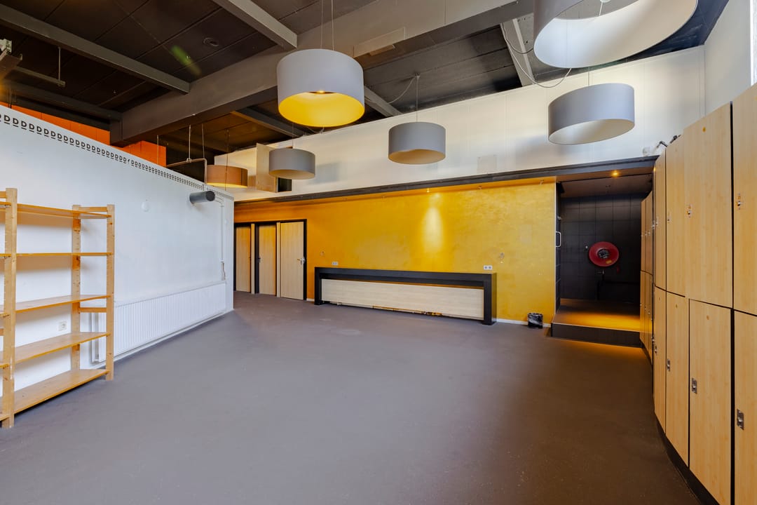 Entree, hal, zaal / oefenruimte, toiletgroepen, kleedruimte, sanitair, toiletten, stookruimte, zaal / oefenruimte, praktijkruimten, kantoor, opslagruimten, kantine / praktijkruimte.