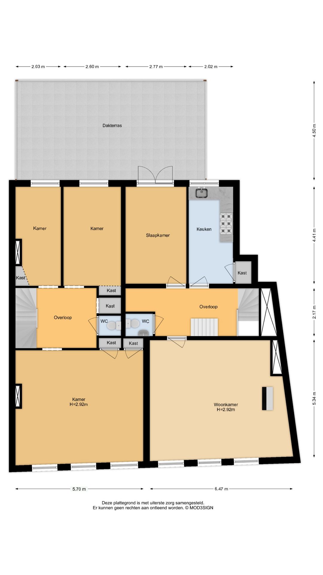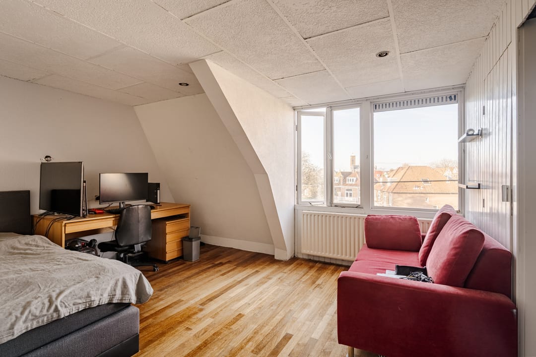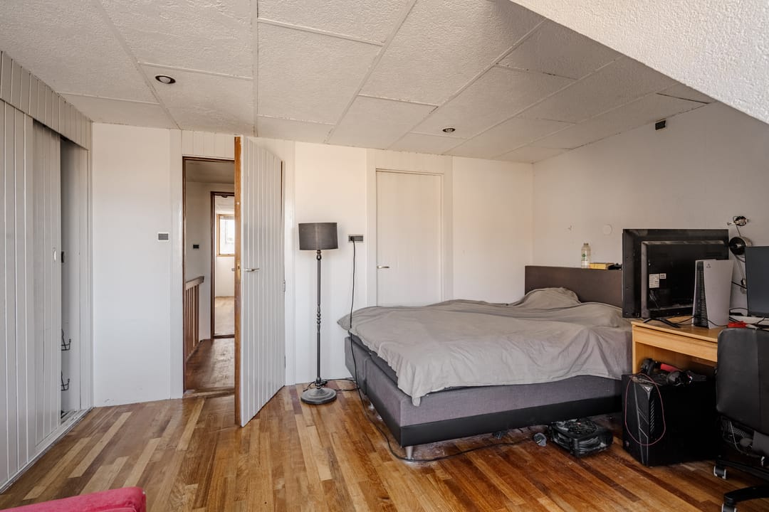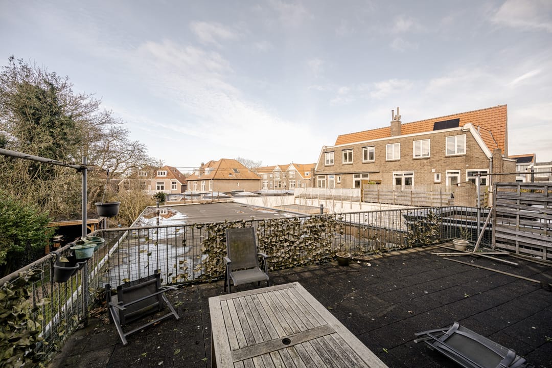 Eigen entree met tochtportaal en opgang. Gedateerde dubbel bovenhuis met op de eerste etage een woonkamer, keuken, toilet, slaapkamer en toegang tot dakterras. Tweede etage; 2 slaapkamers, en badkamer.