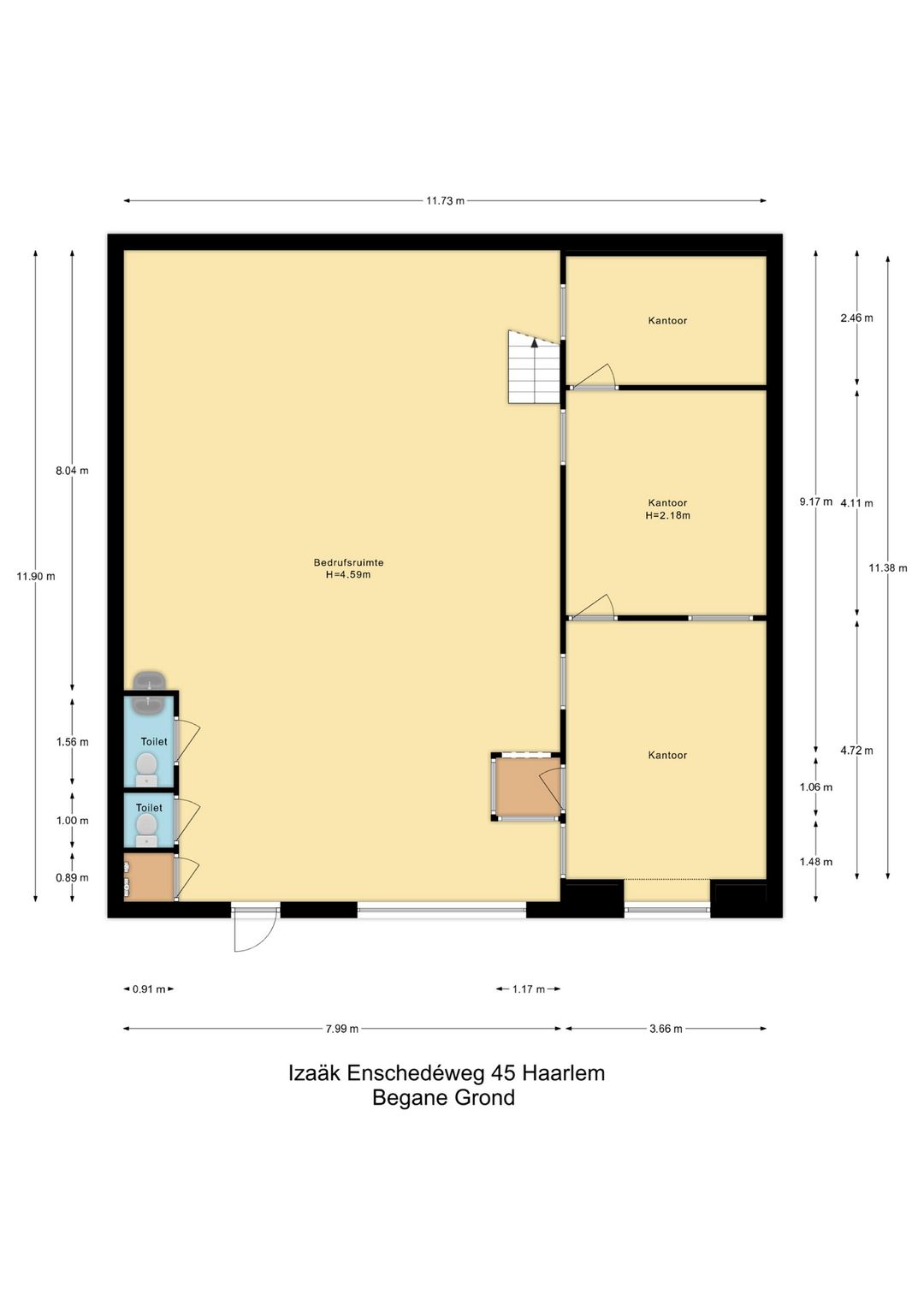 Dankzij de efficiënte opzet is dit object ideaal voor de ondernemer die op zoek is naar een compacte, goed ingedeelde bedrijfsruimte met werk- en kantoorfaciliteiten onder één dak.