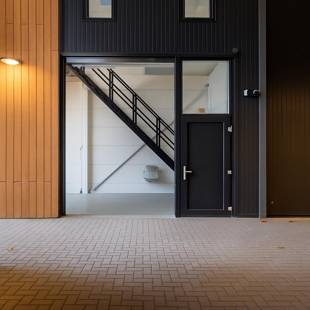 - Een separate entreedeur met raampartij erboven, naast de overheaddeur;