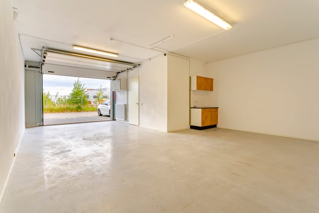 Begane grond: Entree, hal, meterkast, toilet, bedrijfsruimte met overheaddeur, kitchenette.
