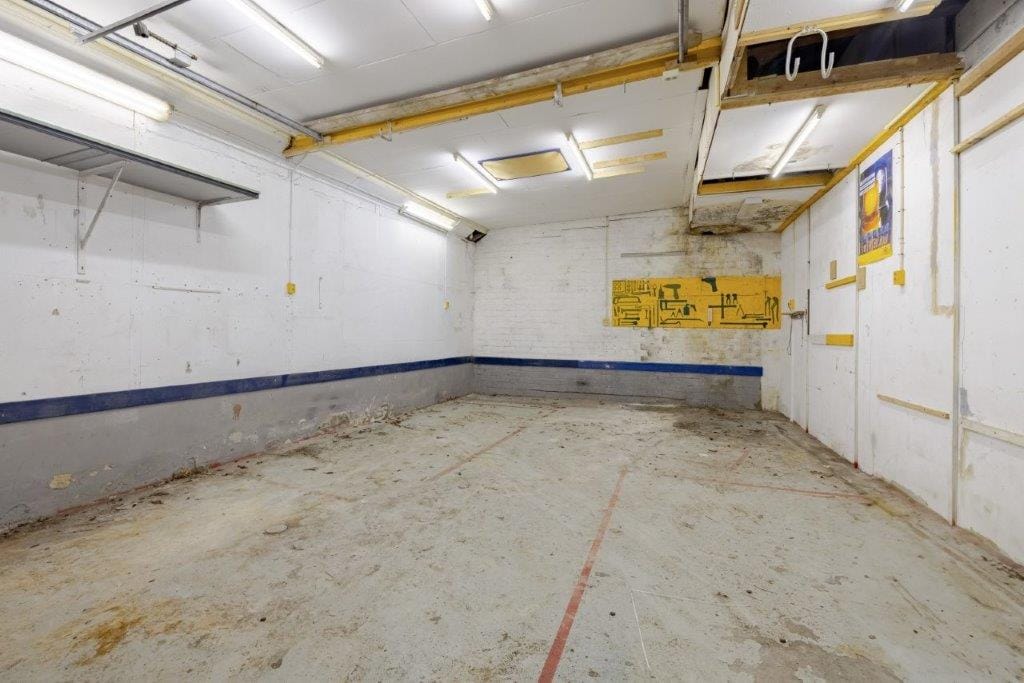 De ruimte is voorzien van een overheaddeur, ideaal als opslagruimte of garage als u werkzaam of woonachtig bent in de omgeving.