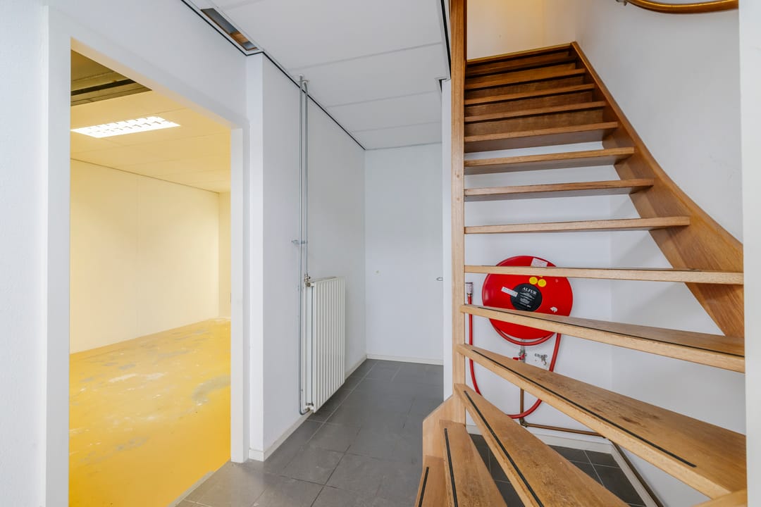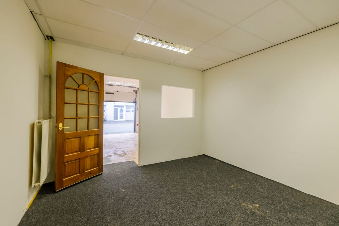 Op de verdieping bevindt zich een kantoorruimte, ideaal voor administratieve werkzaamheden, overleg of het ontvangen van relaties. De combinatie van bedrijfsruimte en kantoor maakt het pand bijzonder geschikt voor ondernemers die werkplaats en kantoor op één locatie willen combineren.