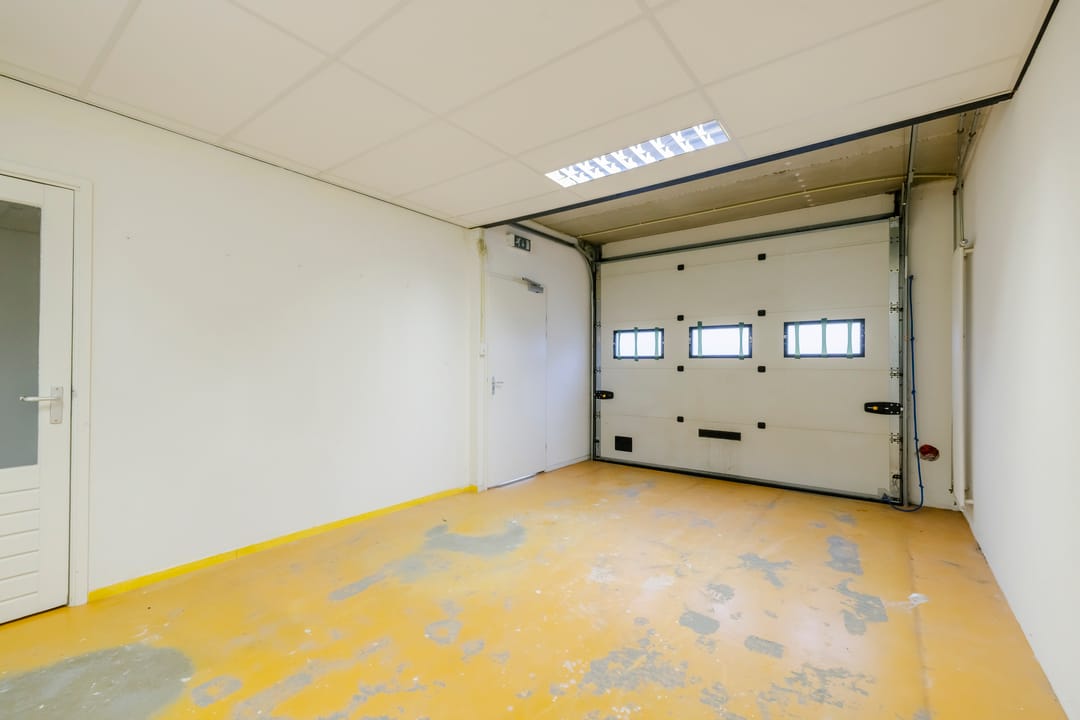 - Overheaddeuren, betonvloer, toilet en pantry