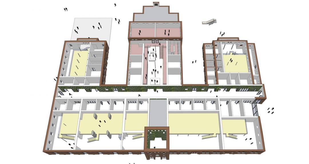 Daarnaast worden in de gemeenschappelijke slachtstraat royale en representatieve gedeelde sanitaire voorzieningen gerealiseerd en een pantry, die beschikbaar zijn voor de gebruikers van het gebouw. Deze centrale ruimte vormt niet alleen een praktische voorziening, maar ook een plek voor ontmoeting, zichtbaarheid en verbinding tussen ondernemers.