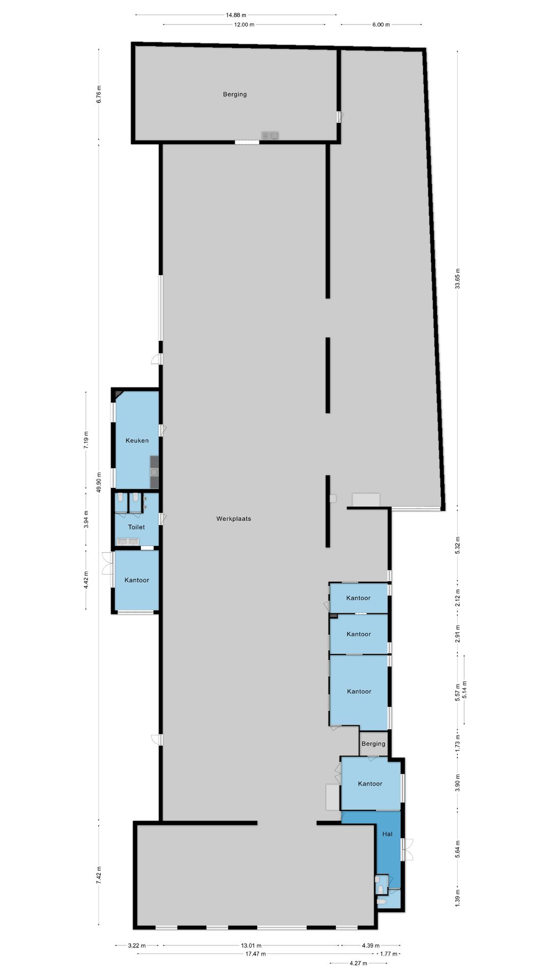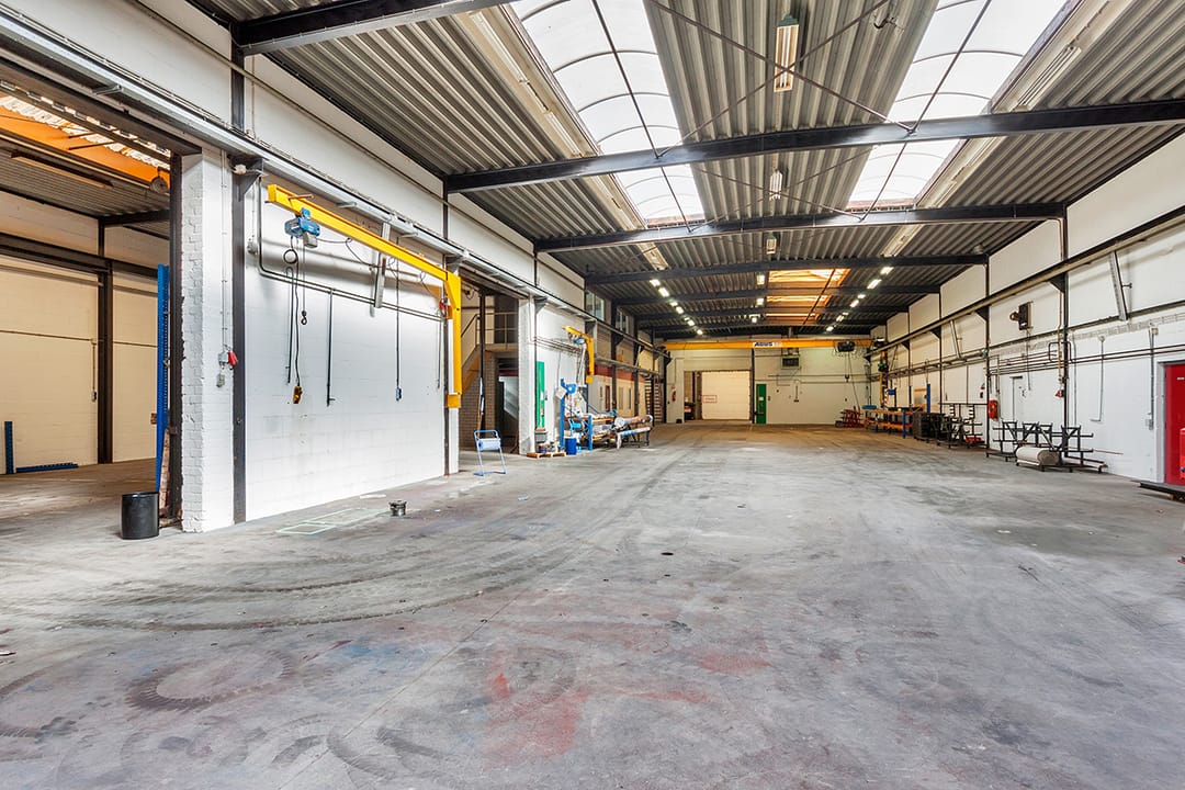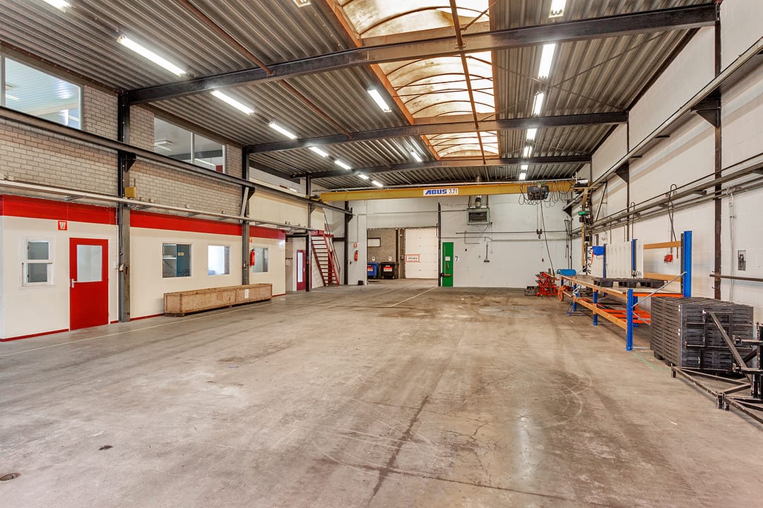 - Lichtstraten, overheaddeuren, krachtstroom, betonvloer, inbouwarmaturen en te openen ramen