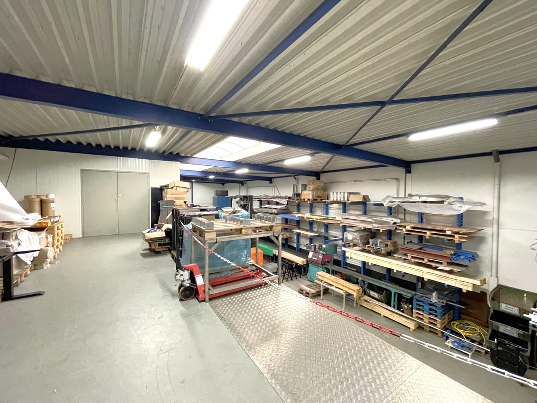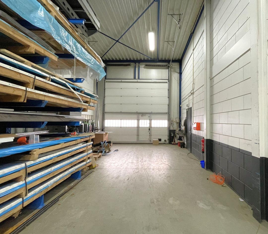 - Lichtstraten, overheaddeuren, krachtstroom, betonvloer, toilet en pantry