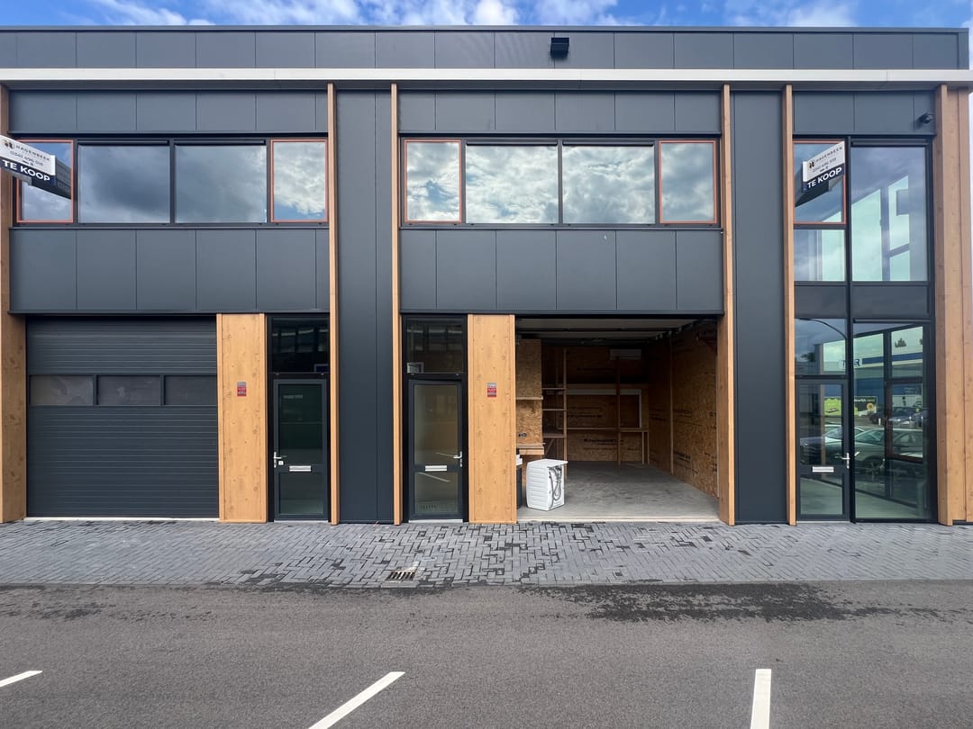 Unieke kans! Aan de kop van een nieuw gebouwd bedrijfscomplex een nagenoeg compleet afgewerkte, energiezuinige bedrijfsunit.
