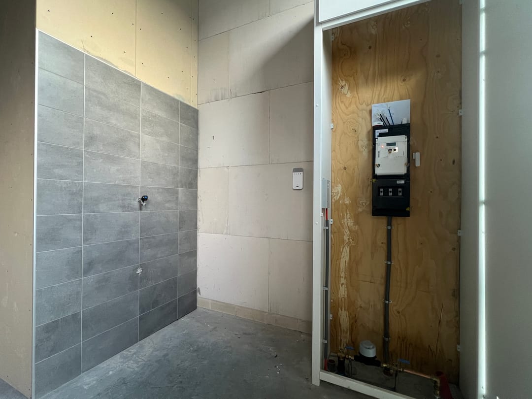 - meterkast met aansluitingen voor elektra en water;