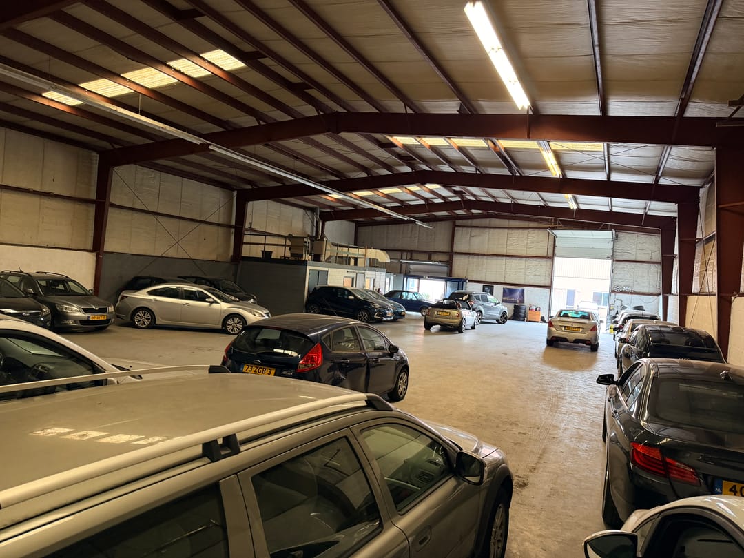 - Overheaddeuren, betonvloer, toilet, pantry en te openen ramen