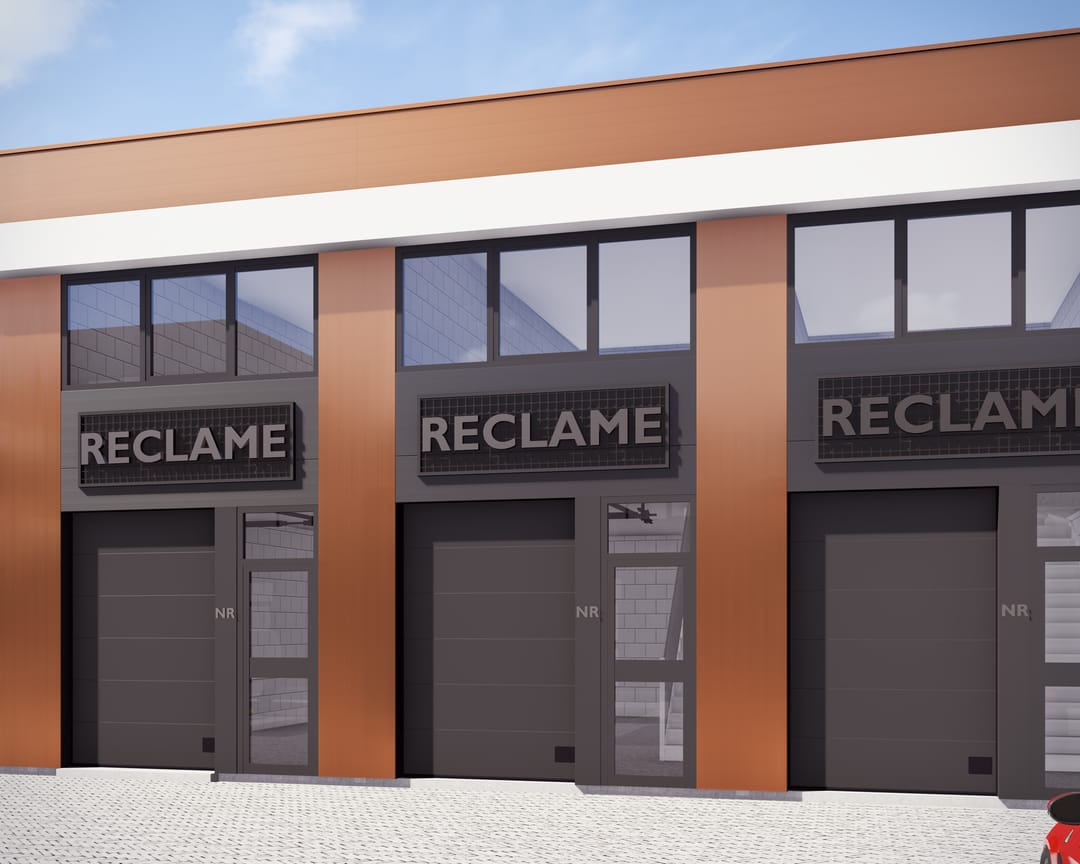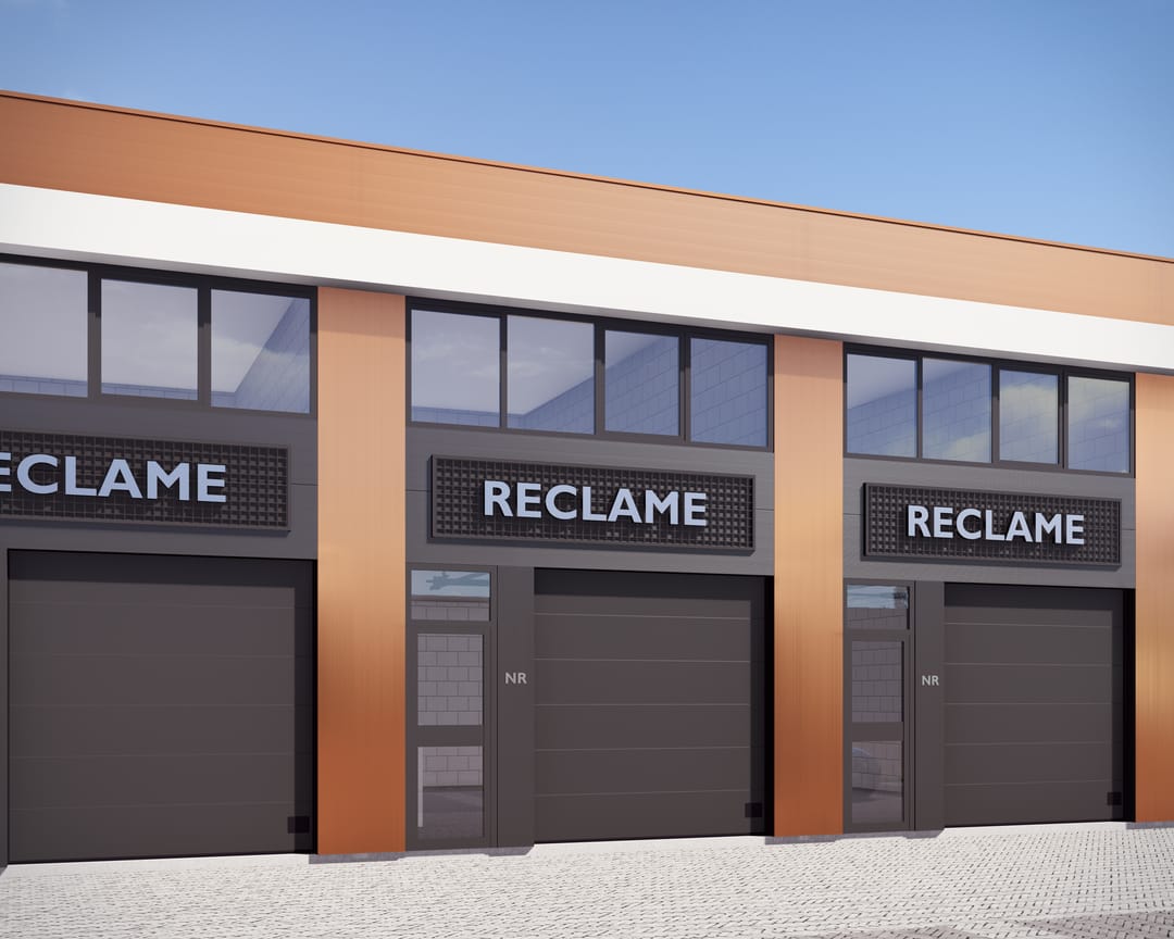 + Elektrische overheaddeur van geïsoleerde sandwichpanelen;
