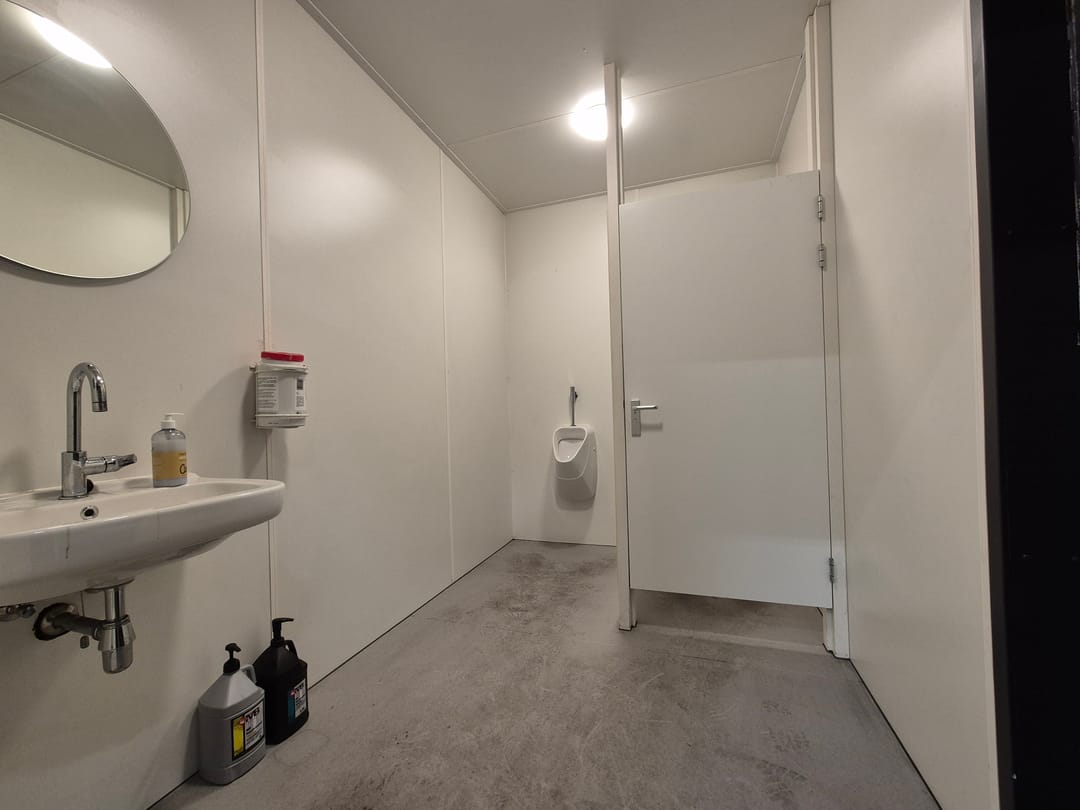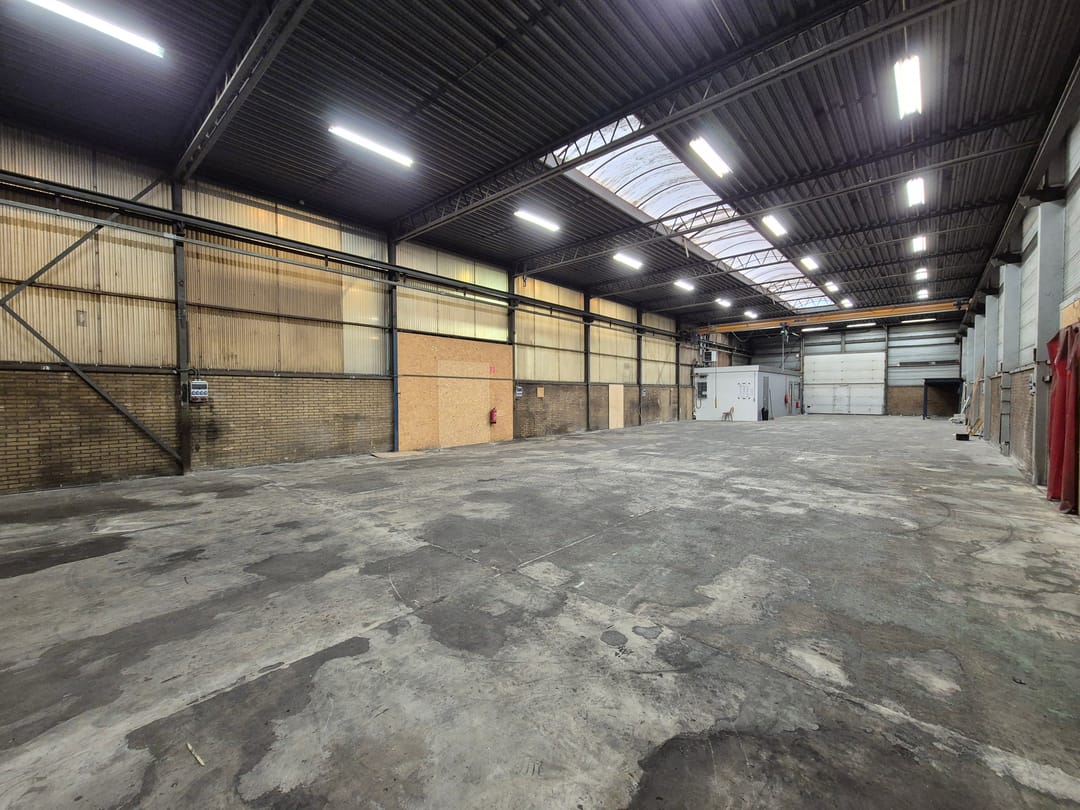 - Lichtstraten, overheaddeuren, betonvloer, heater, toilet en pantry