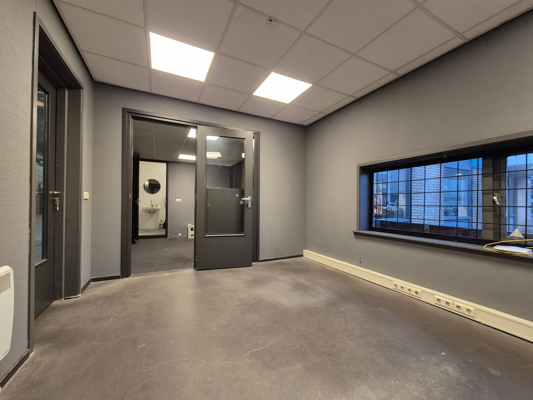 • werkplaatskantoor met verlichting, verwarming en daglichttoetreding.