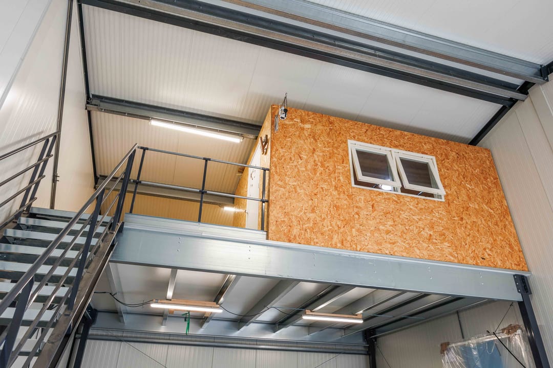 Etagevloer: vloeroppervlakte: ca. 35 m²; hoogte bovenzijde vloer: 3.438 mm; vrije hoogte onderzijde vloerconstructie: 3,00 m¹; netto draagvermogen: 350 kg per m² netto, gelijkmatig verdeeld.