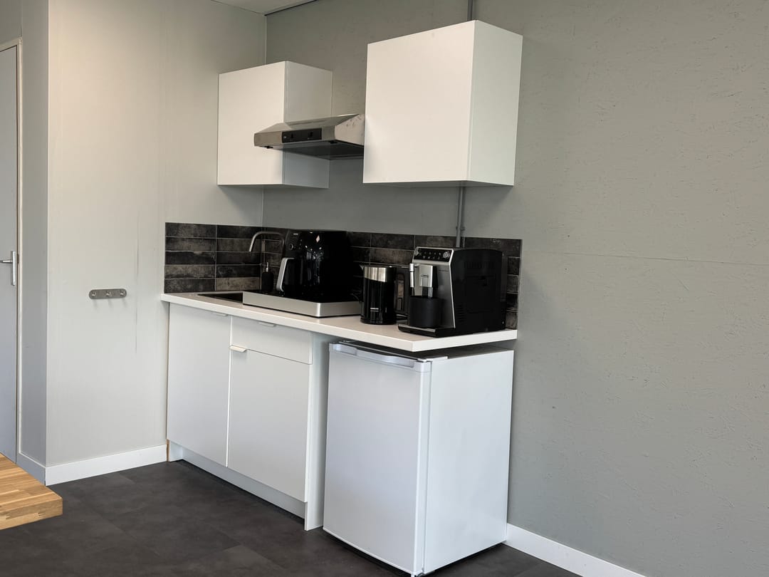 - Airconditioning, overheaddeuren, betonvloer, toilet, pantry en inbouwarmaturen