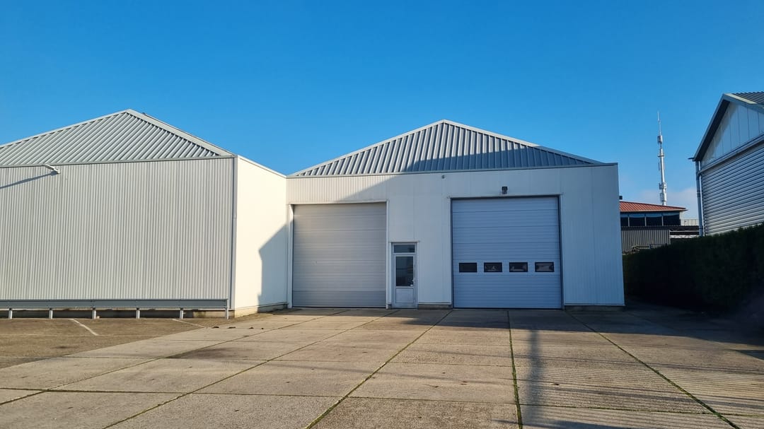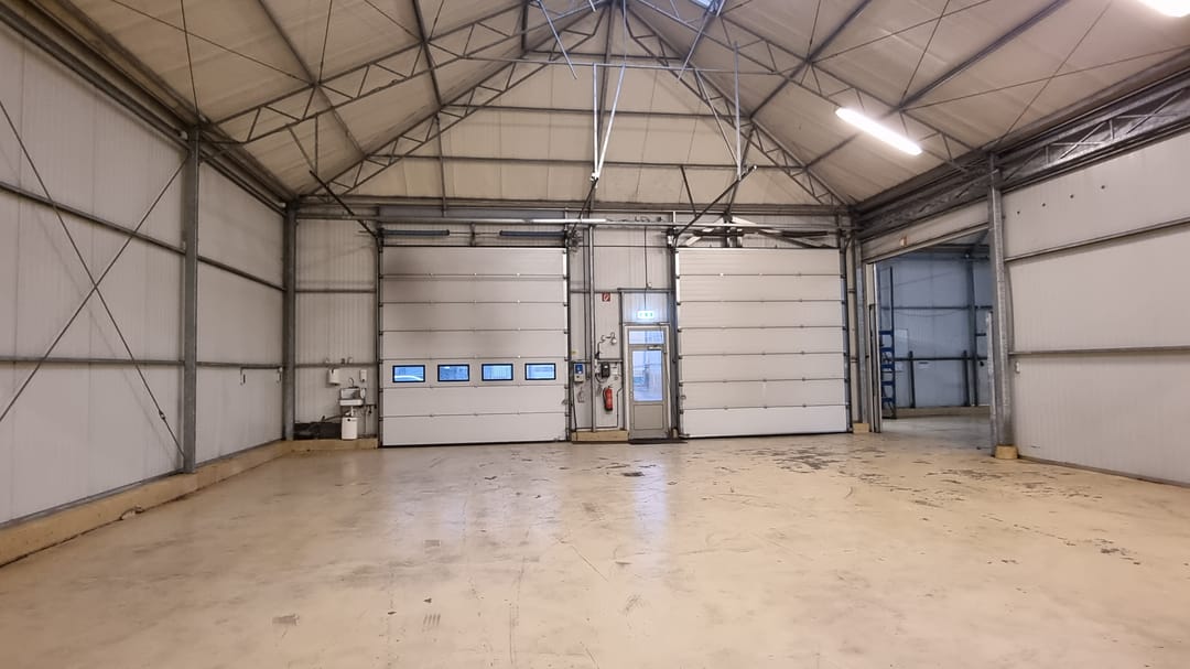- Twee elektrisch bediende overheaddeuren in de voorgevel en een overheaddeur in de zijgevel, afmetingen 4m breed en 4,20m hoog