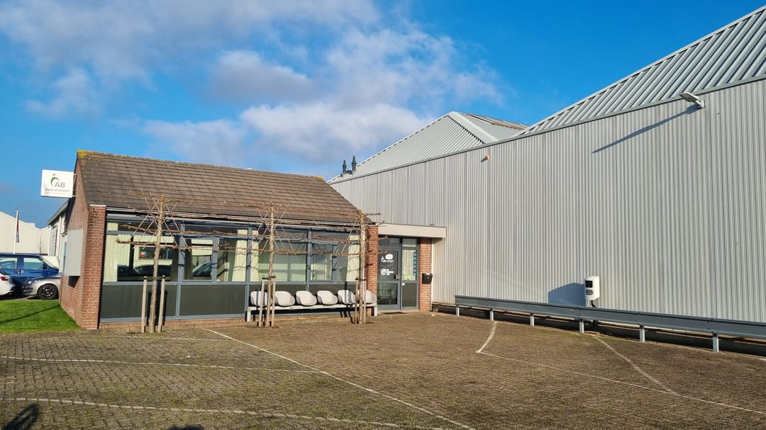 - Westgevel van de bedrijfsruimte voorzien van aanrijbeveiliging (vangrail)