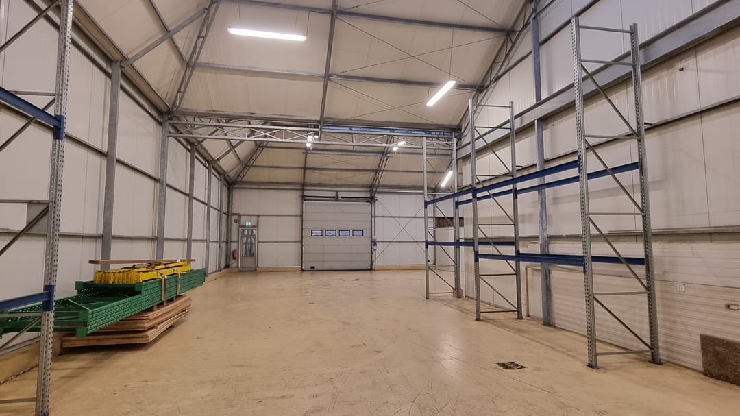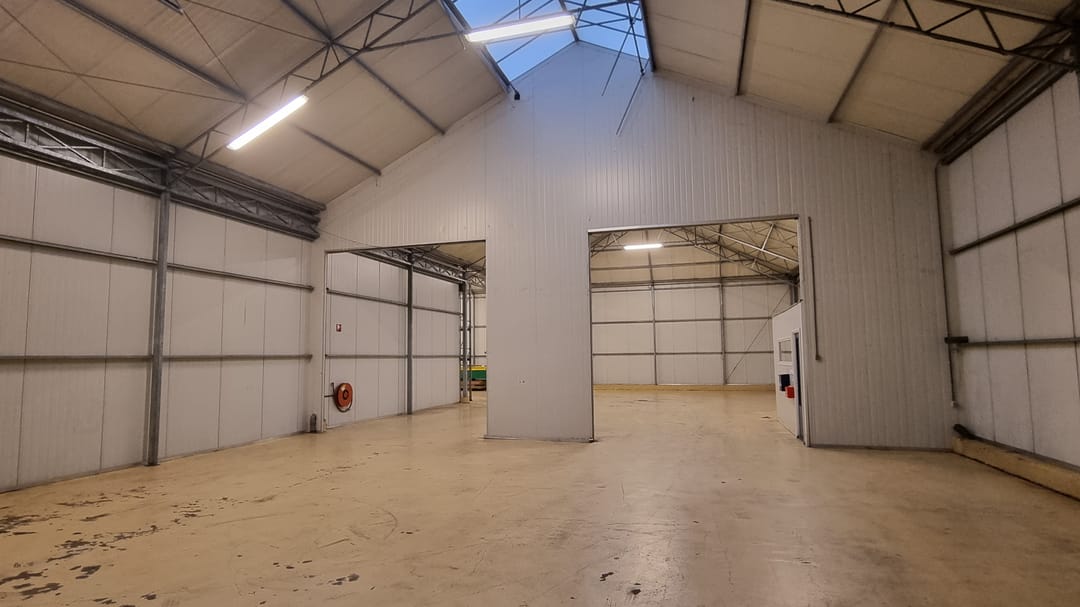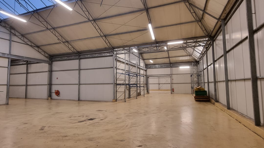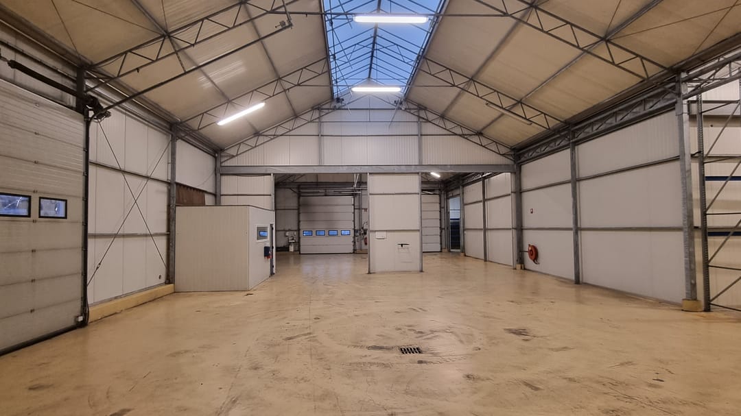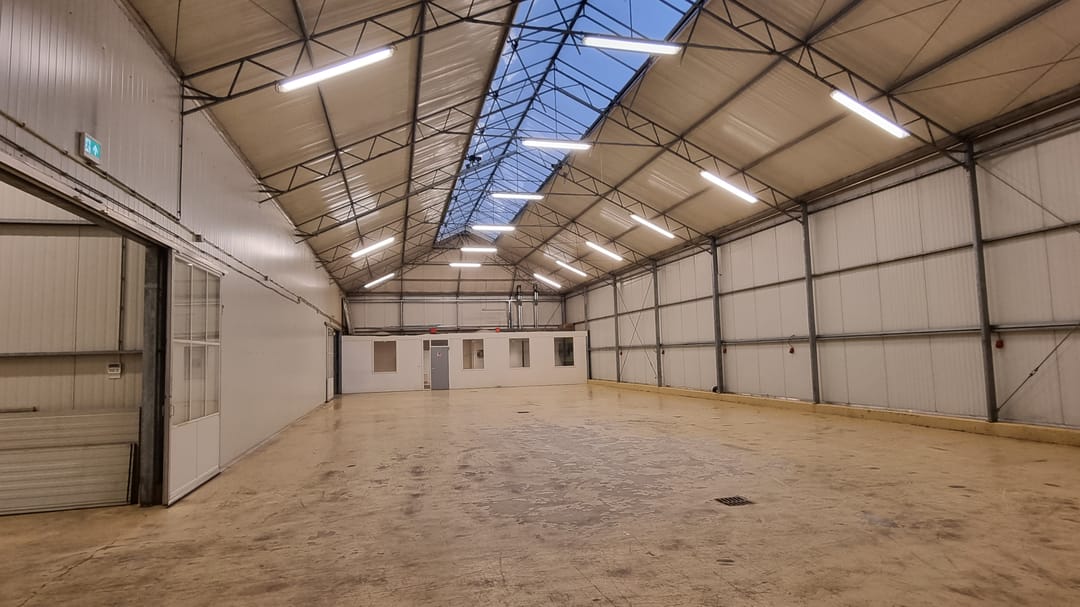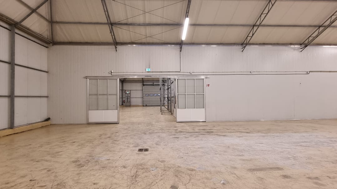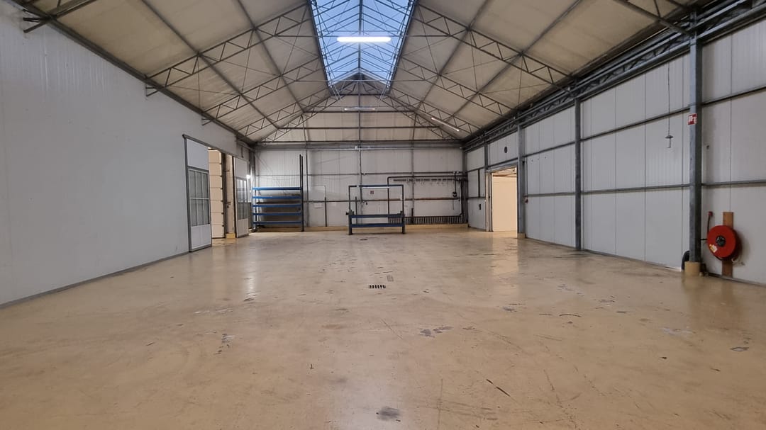 - Ingedeeld in drie hallen middels scheidingwanden van sandwichpanelen en aluminium schuifdeuren