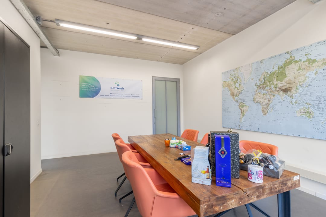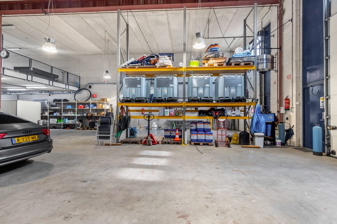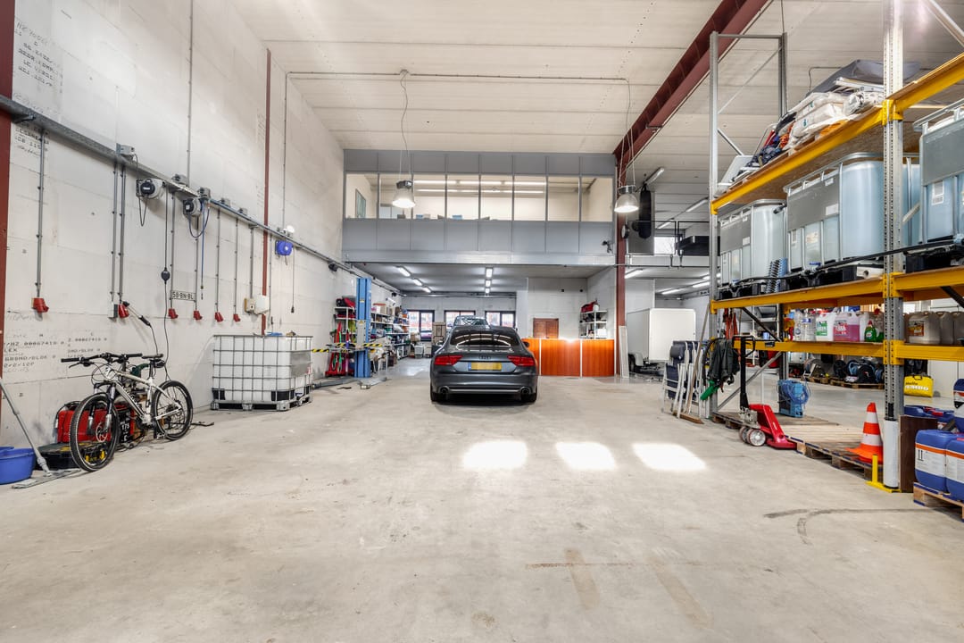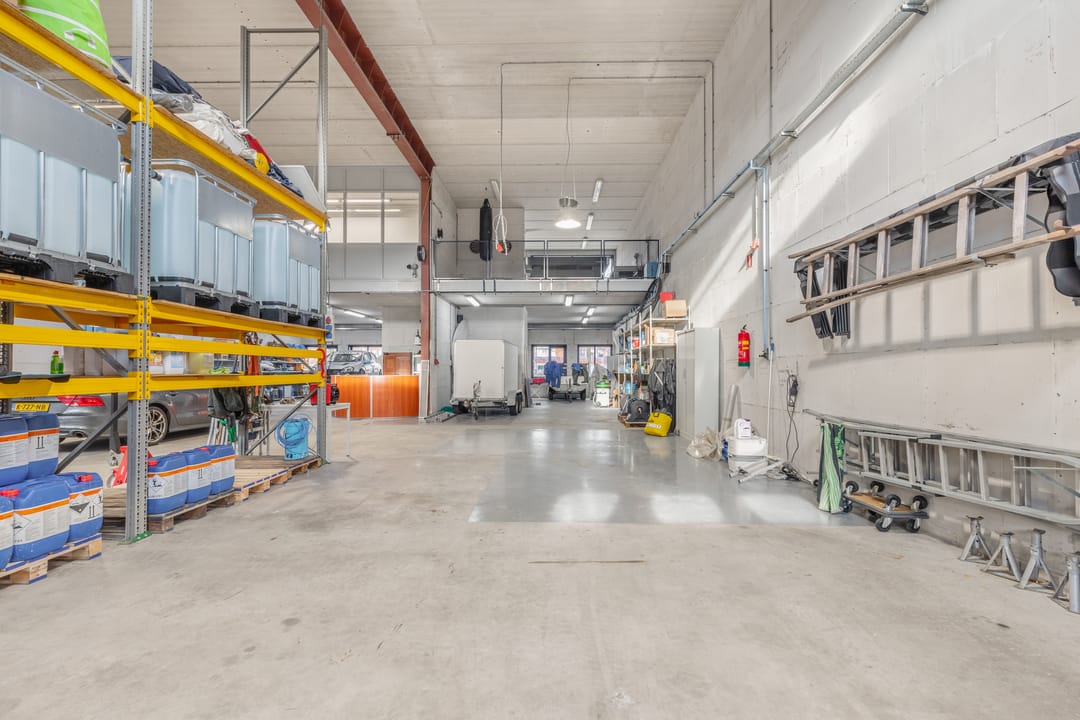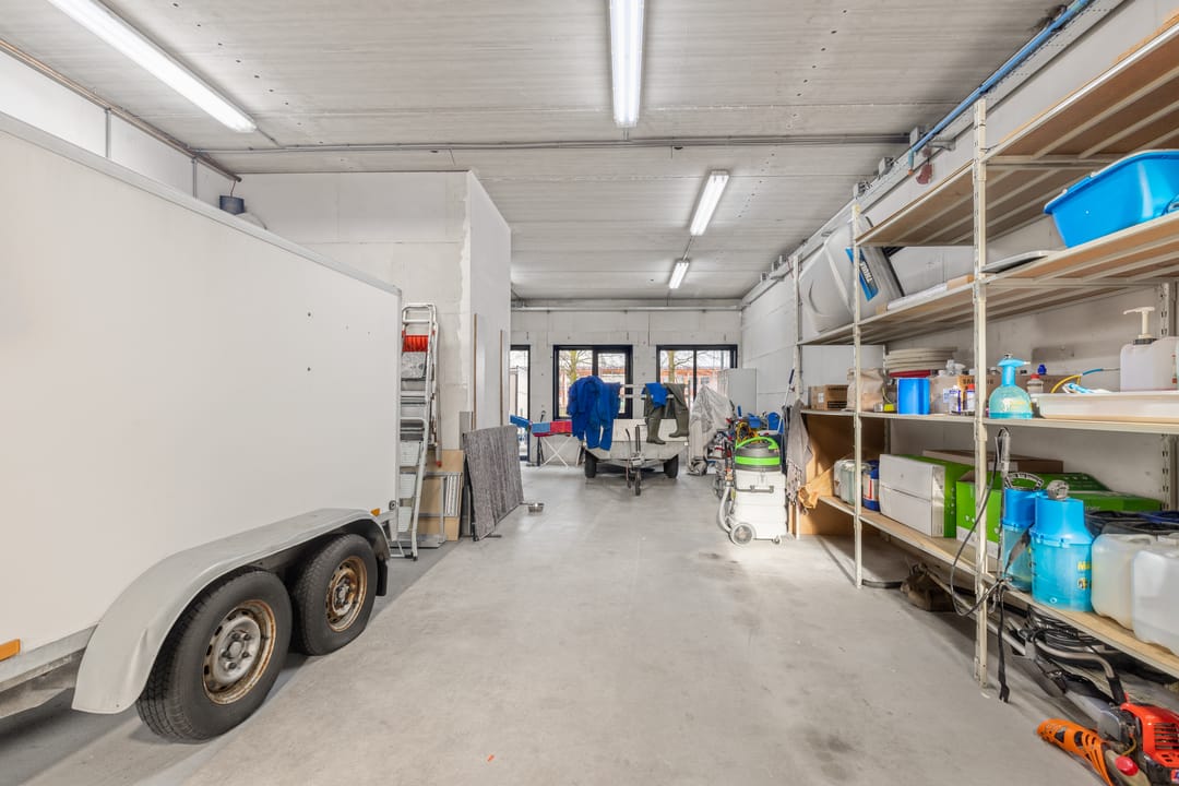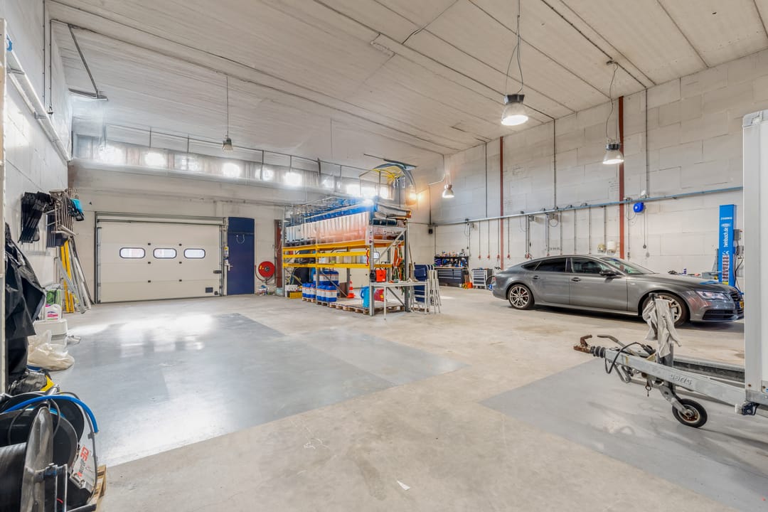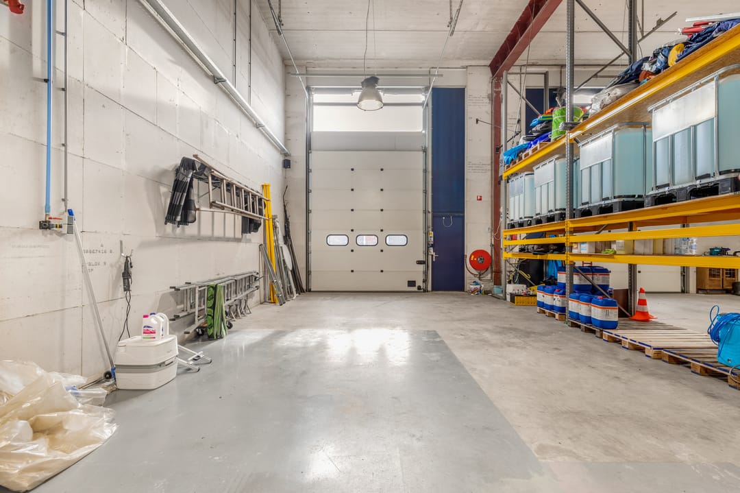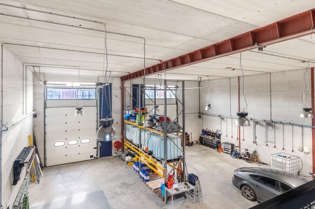 - Overheaddeuren, krachtstroom, betonvloer, inbouwarmaturen en te openen ramen