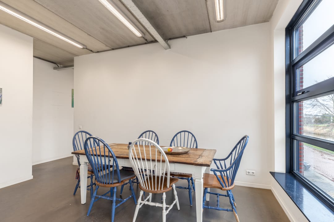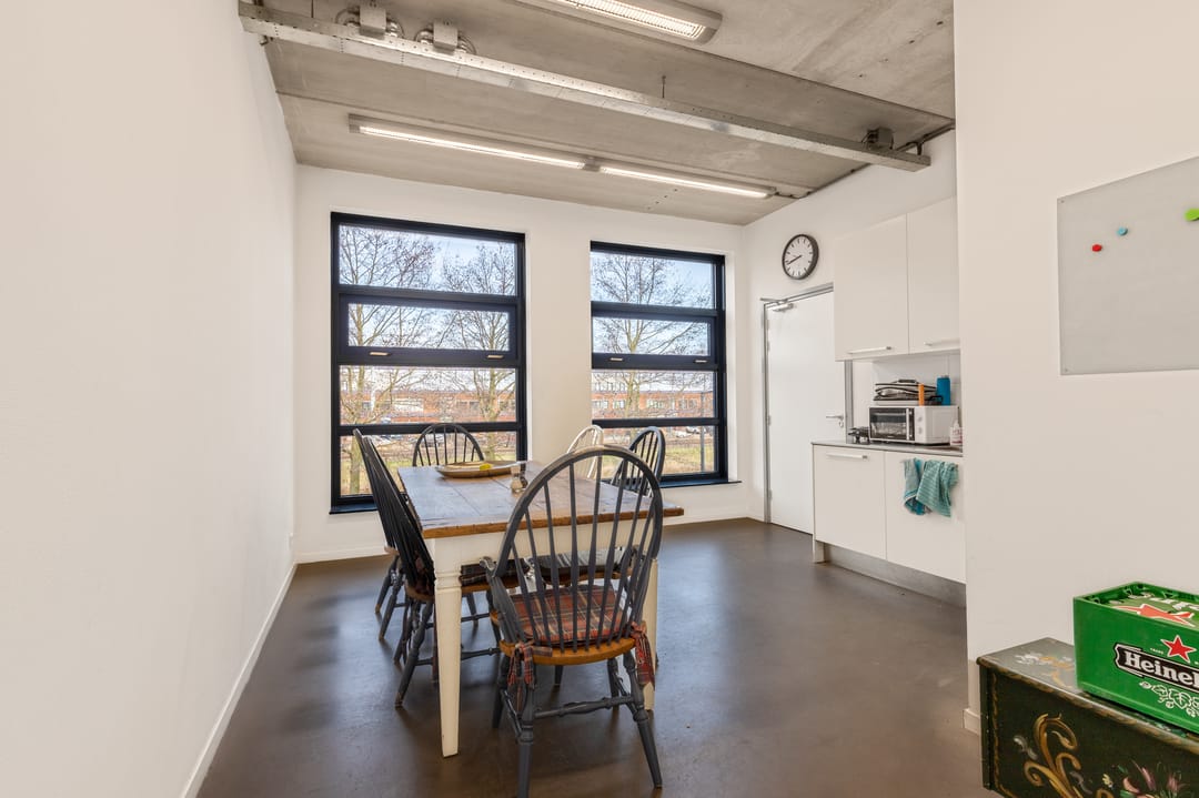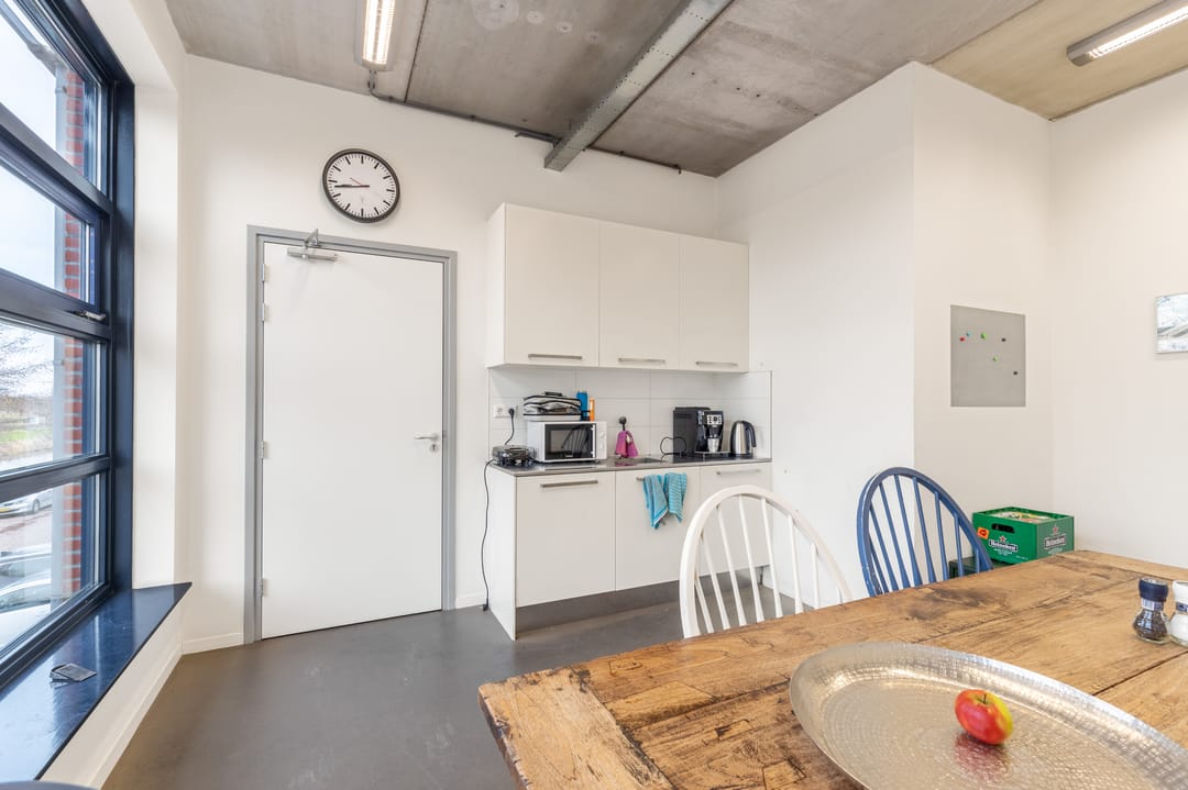 1e verdieping: overloop, kantine met keuken v.v. inbouwapparatuur, kantoorruimte en bedrijfsruimte.