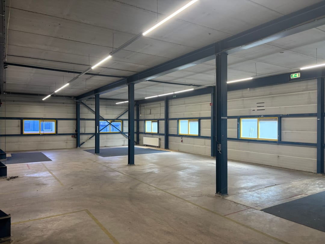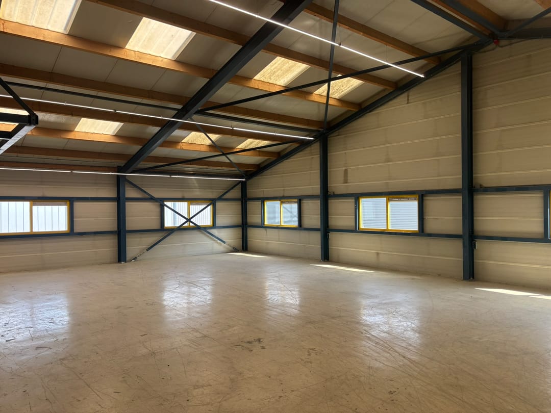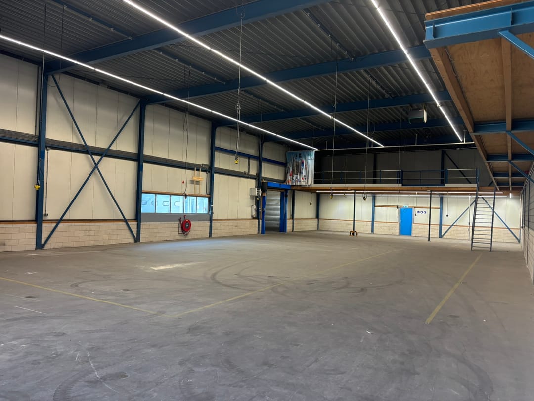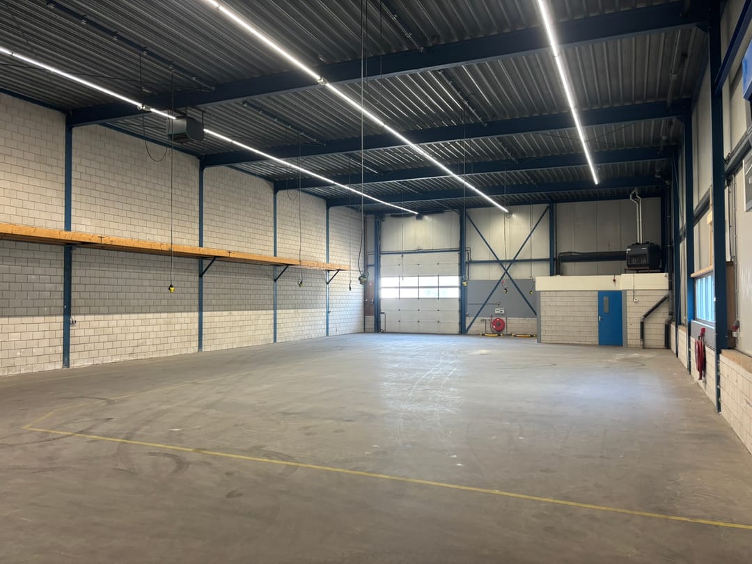 - Lichtstraten, overheaddeuren, betonvloer, toilet en pantry