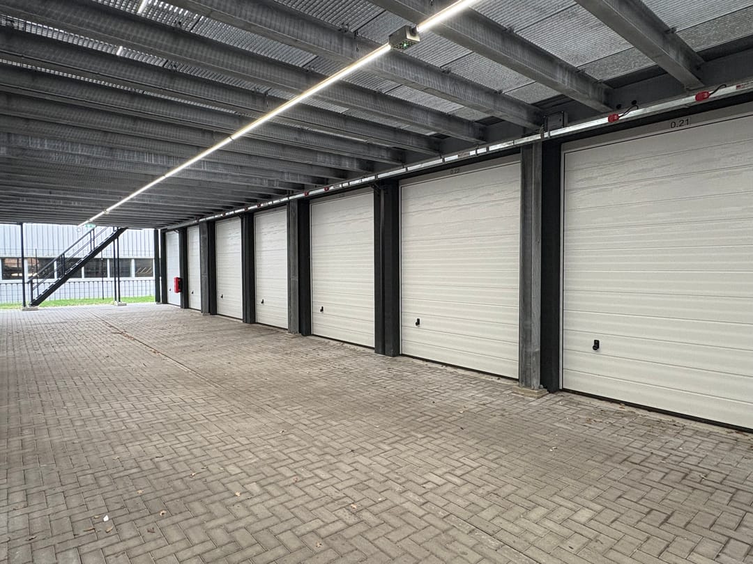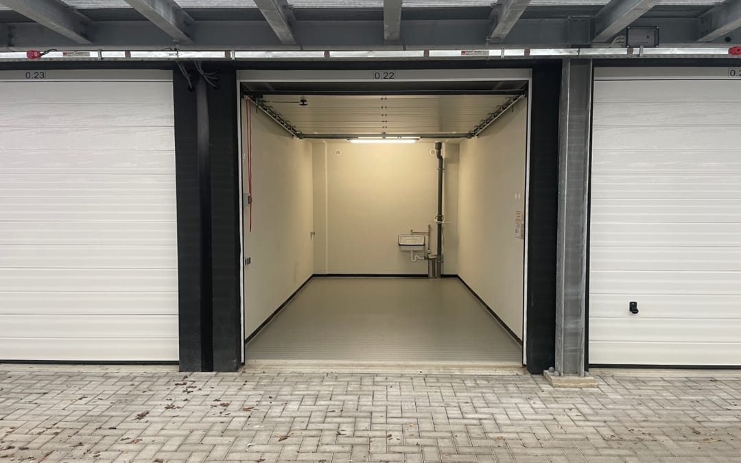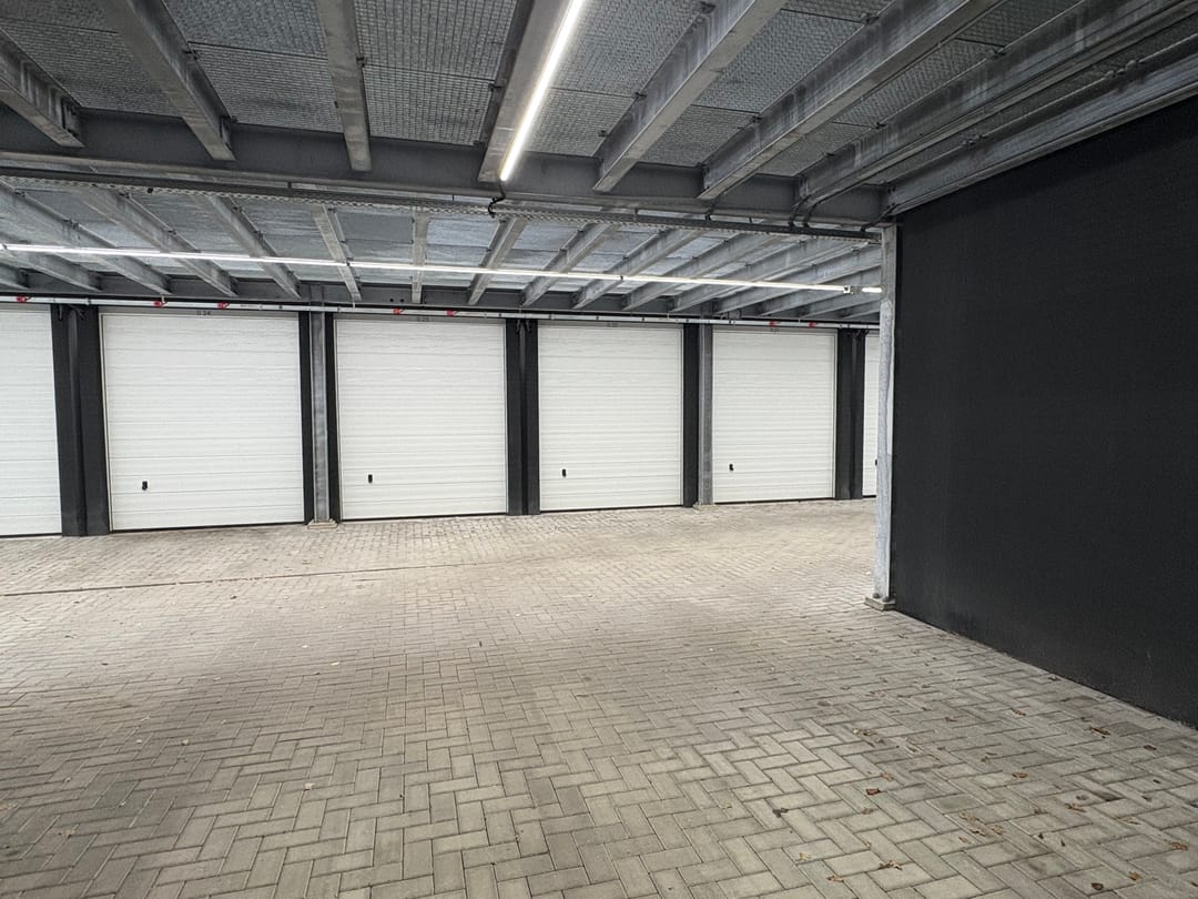 In het recent gebouwde garageboxenpark Multipark I te Heerhugowaard biedt VLIEG Bedrijfsmakelaars nu deze garagebox van het type 18 XL aan. Het betreft unit 0.22 gelegen op de begane grond. De garagebox heeft buitenwerkse maten van 6 meter x 3 meter x 3,5 meter (L x B x H) en is voorzien van een wateraansluiting, een elektra aansluiting (8A) en een vloeistofdichte vloercoating. De handbediende sectionaaldeur heeft een inrijhoogte van 2,9 meter en een inrijbreedte van 2,5 meter.