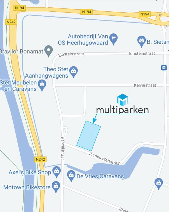 Multipark Heerhugowaard ligt op een steenworp afstand van de N242 - de doorgaande weg naar Alkmaar en de snelweg A9 - en nabij treinstation Heerhugowaard.
