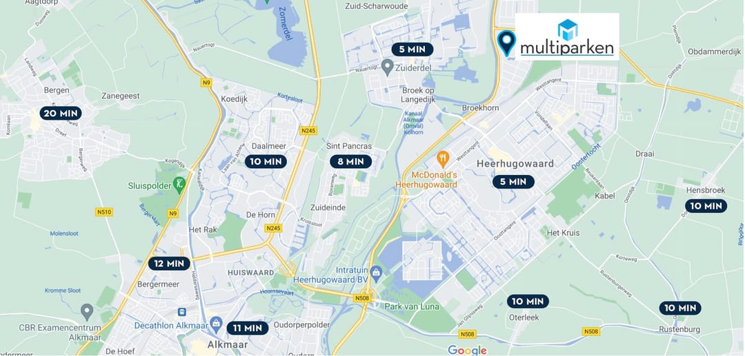Multipark Heerhugowaard ligt centraal in de HAL Regio: op 15 minuten rijden vanuit Alkmaar, Bergen, Heiloo, Schagen en Obdam en op 5 minuten rijden vanuit Langedijk en Heerhugowaard.