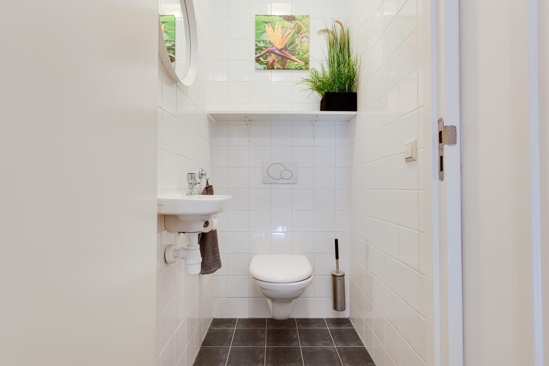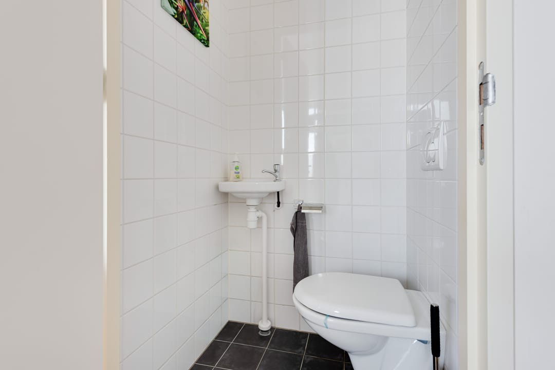 Op de begane grond bevindt zich daarnaast een toilet met een wasbakje. Ook is er in de werkruimte een extra wasbak aanwezig, wat bijzonder praktisch is voor bedrijven die werken met materialen of gereedschappen en waar handen wassen of schoonmaken regelmatig nodig is.