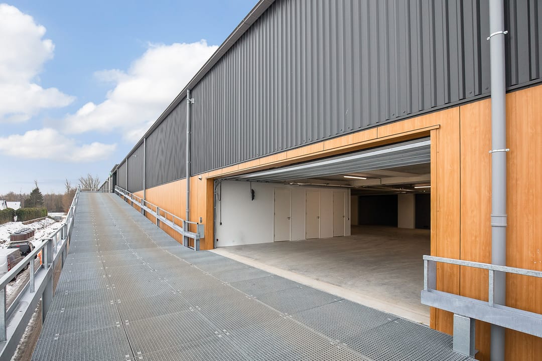 Dankzij de zeer hoge vloerbelasting 500 kg/m2 kan je zware machines en materiaal makkelijk kwijt. De overdekte ingang biedt bovendien de mogelijkheid om makkelijk te laden en lossen.