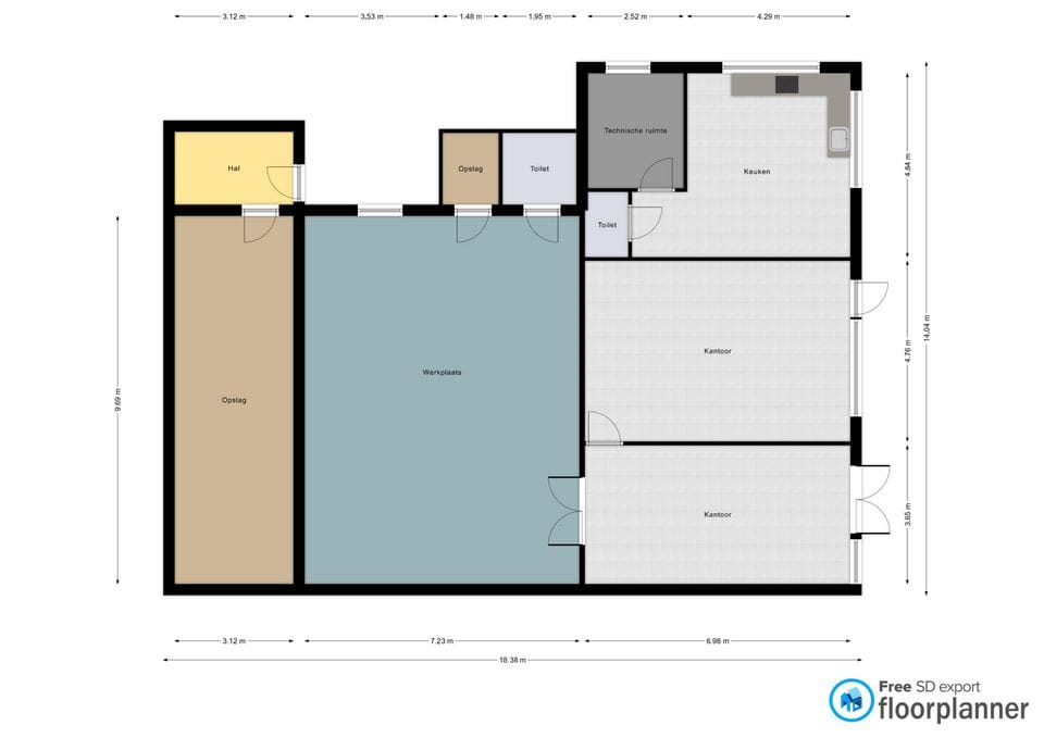Het object heeft een mooie kantoor gedeelte op de begane grond ± 100 m² en een werkruimte samen ± 110 m² groot. Deze is via de binnen- en buitenzijde bereikbaar.