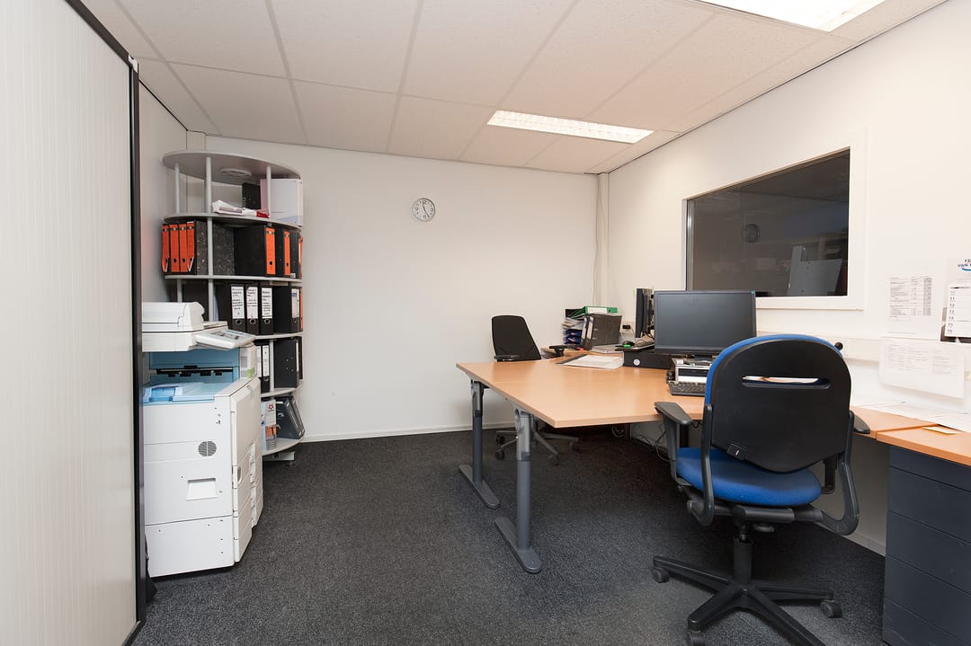 Het object is uitgerust met een praktisch ingebouwd kantoortje, ideaal voor administratieve werkzaamheden of overleg. Tevens is er een nette, gemeenschappelijke voorziening aanwezig in de vorm van een gang met keukenblokje en toilet. Deze faciliteiten worden gedeeld met een keurige en stabiele kantoorgebruiker aan de voorzijde van het pand, waarbij de bedrijfsruimtes volledig gescheiden functioneren. Deze opzet zorgt voor een prettige balans tussen zelfstandigheid en efficiënt gebruik van voorzieningen.