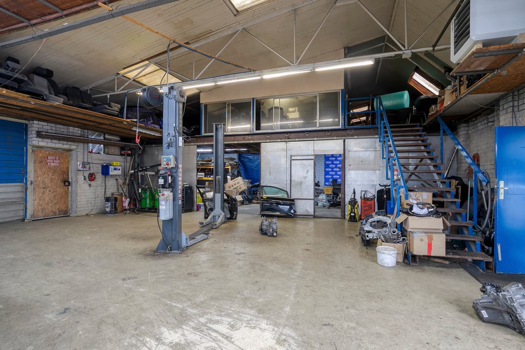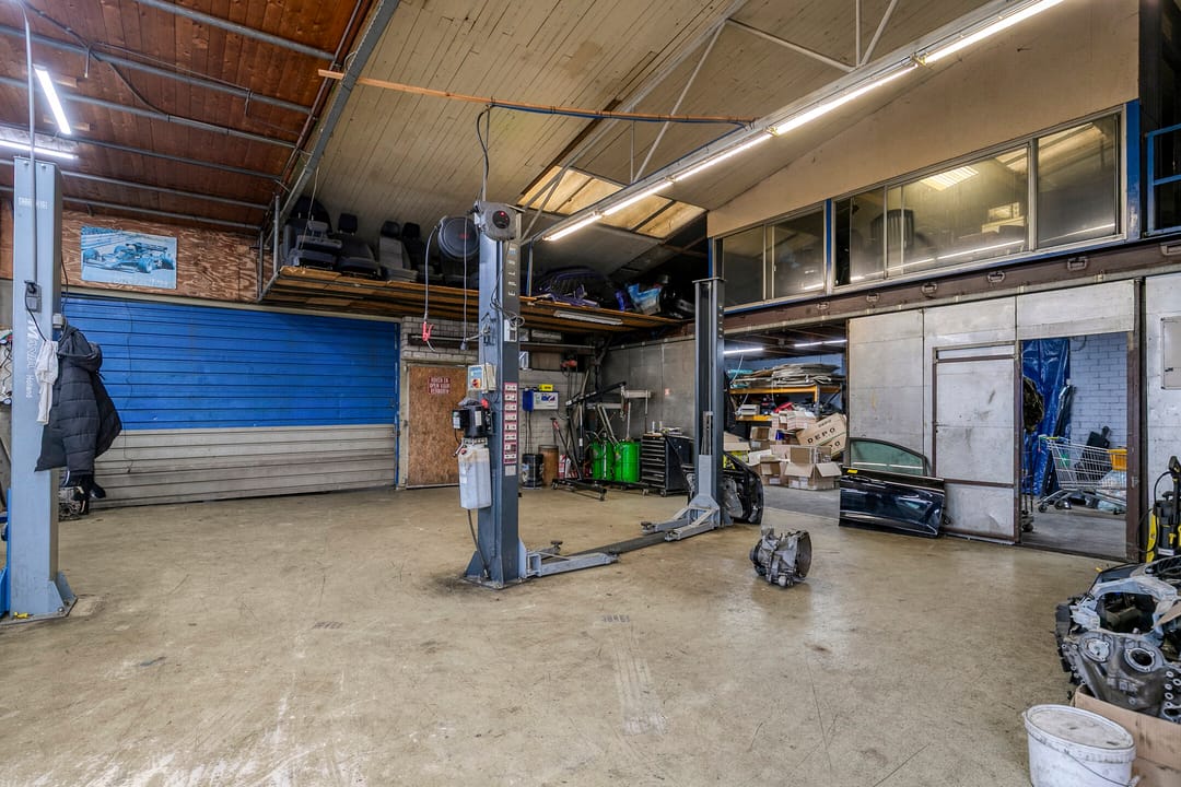 - De werkplaats is voorzien van een overheaddeur