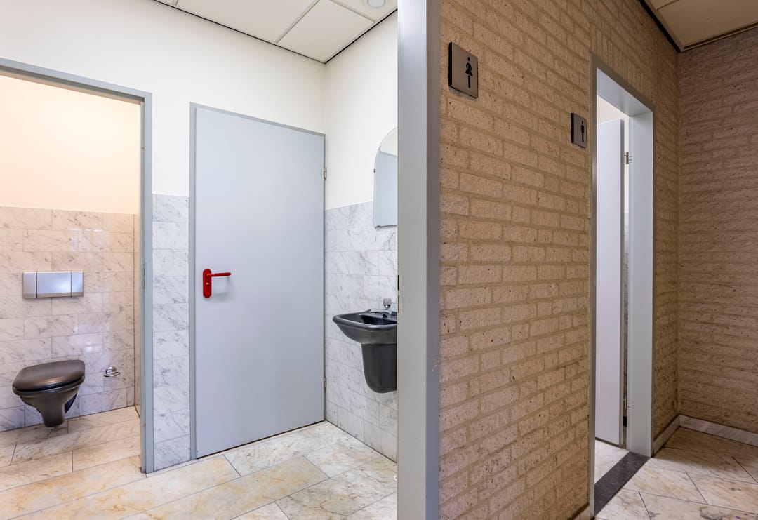 - Personeelsingang met toegang tot de EHBO ruimte, 2 kleedlokalen en gescheiden sanitaire voorzieningen;