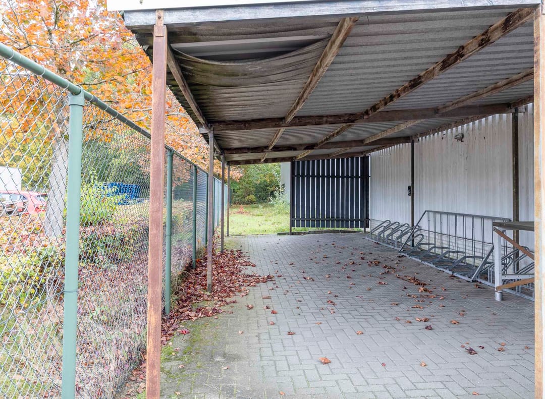 - Achter de bedrijfshal is een overkapping geplaatst met spoelplaats, voorzien van vloeistofdichte vloer met put en afvoersysteem.