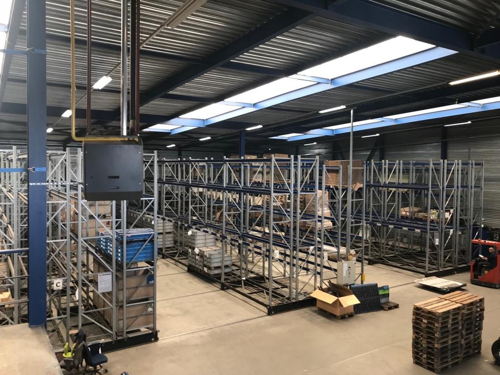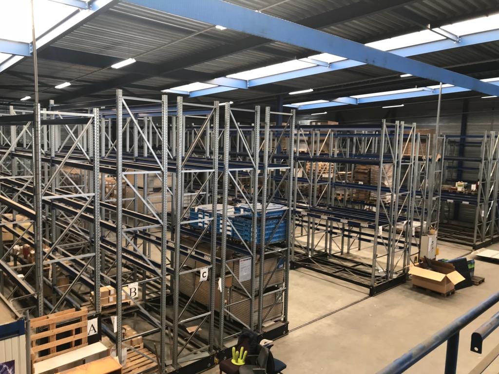 • Verrijdbaar palletstellingsysteem (Schäffer) voor ca. 1.200 palletplaatsen