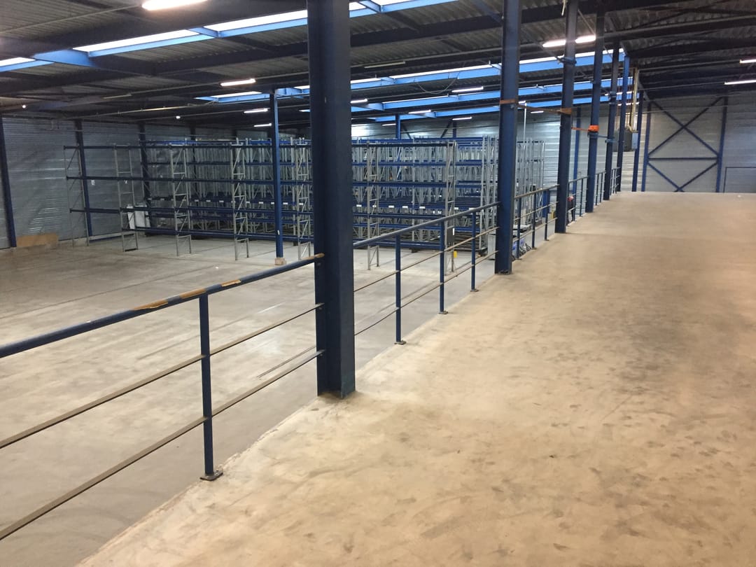 - Entresol: ca. 300 m² (betonvloer, balustrade, kantelhek)
