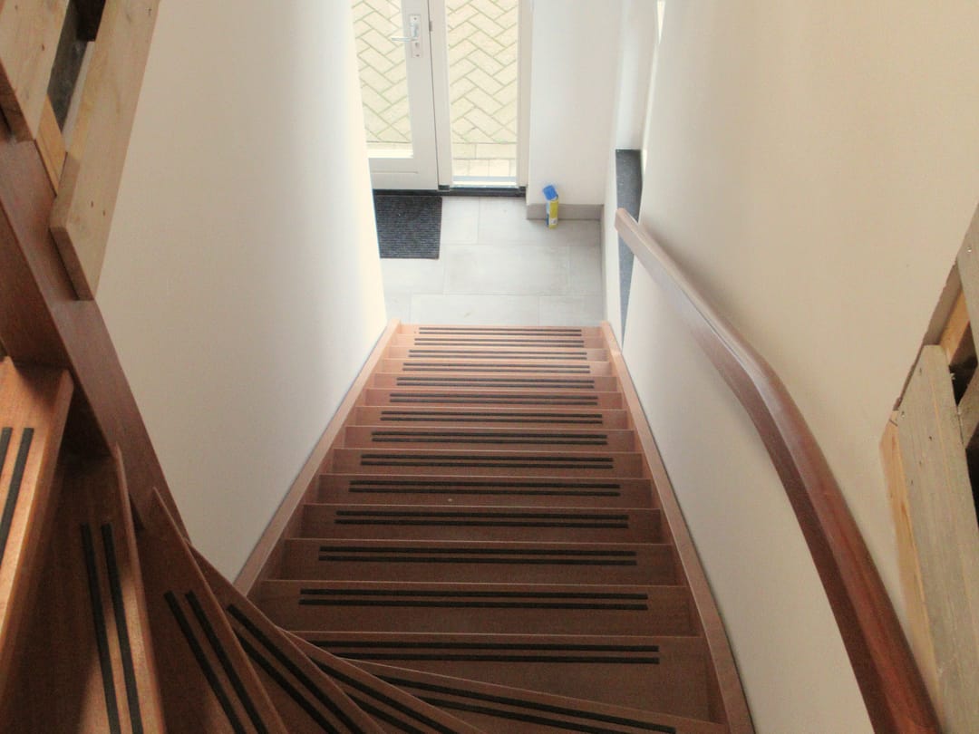 Entree via de loopdeur aan de voorzijde, via de loopdeur aan de zijkant of via de overheaddeur. De bedrijfsruimte is voorzien van een elektrische overheaddeur. Via de houten trap bereikt u de verdieping waar de pantry gesitueerd is alsmede een grote open kantoorruimte met een kleinere kantoorruimte gelegen aan de straatzijde.